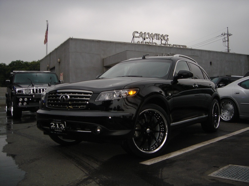 納車させて頂いた車両を紹介致します。インフィニティFX45に特注ブラックディスクを装着しました。日頃からお忙しいオーナー様のライフスタイルにマッチし、軽快な走りでデイリーユーズをサポートしております。日頃から当店をご利用頂いておりまして有難う御座います。余り無理をせず身体に気をつけて頑張ってください!