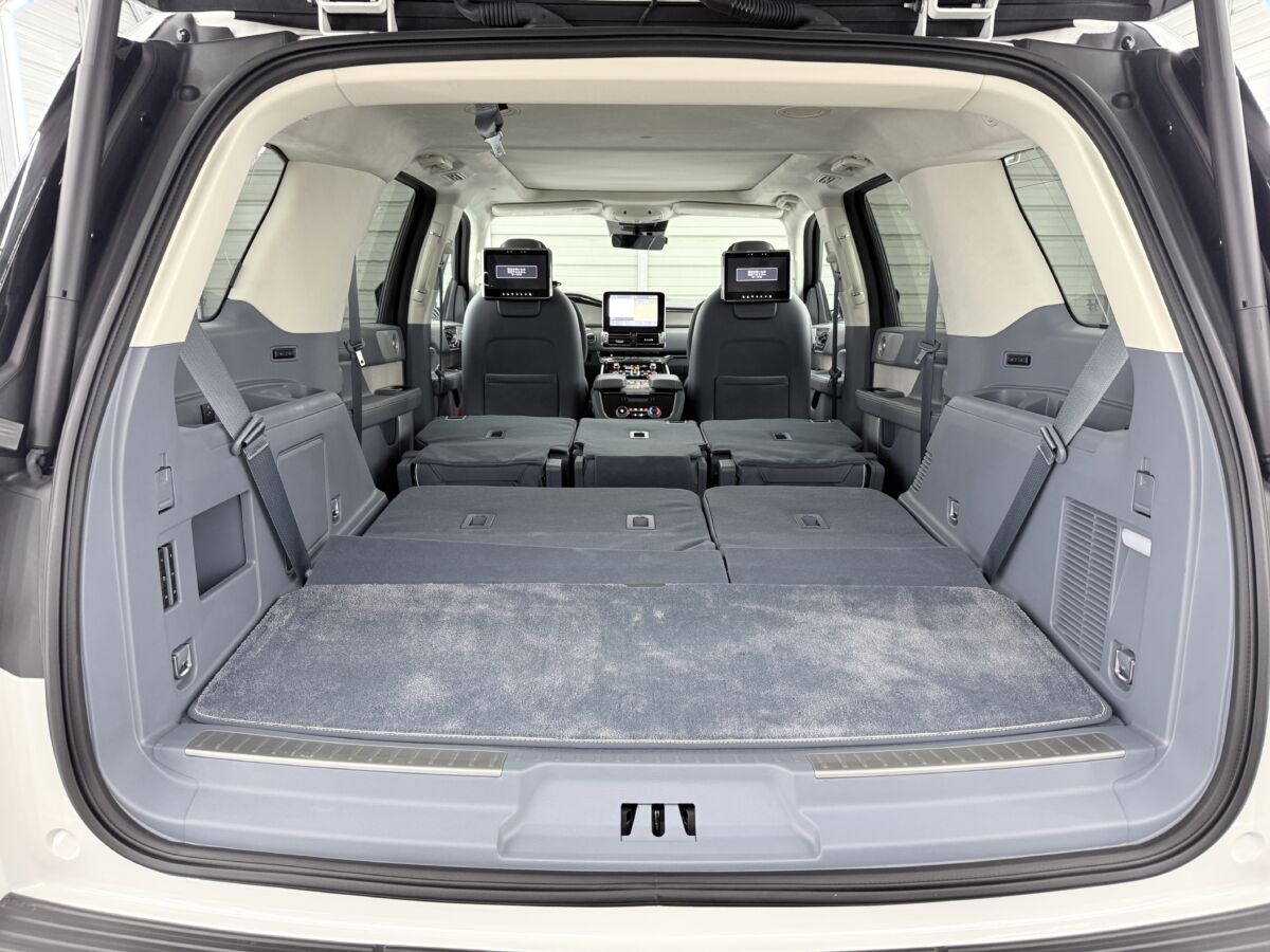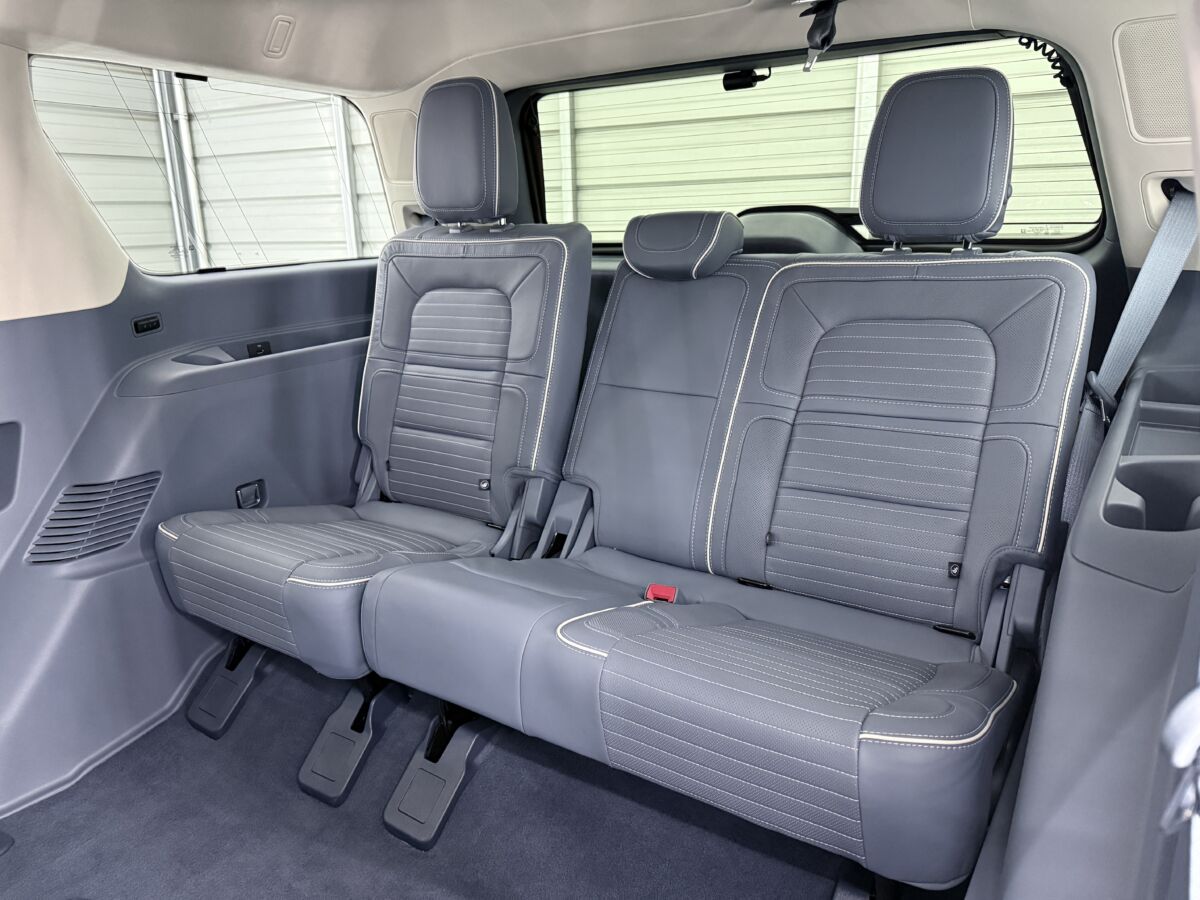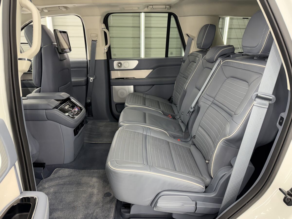 何と言っても現行ナビゲーター最大の特徴といえば、セカンドシートが大きくスライドするリムジン並みの足元の広さ!! これまでのSUVでは考えられないほど広く、大人が足を組んでゆったりと座れる広さが自慢です。