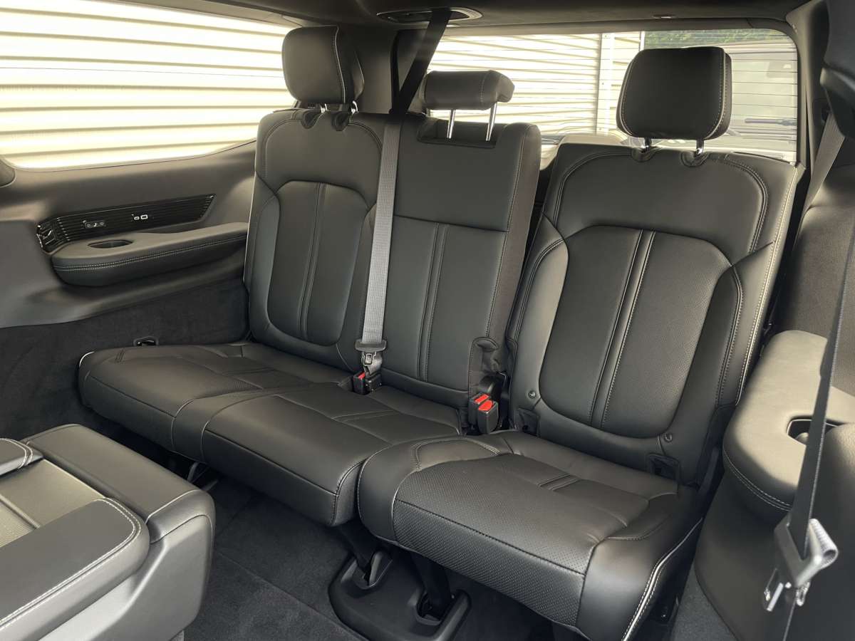 2列目キャプテンシートはスライド&リクライニング機能付きで足元の広さは別格です。大人がゆったり足を組んでも余裕があります。大型のアームレスト付きセンターコンソールの素材、デザインも豪華さが際立ちます。