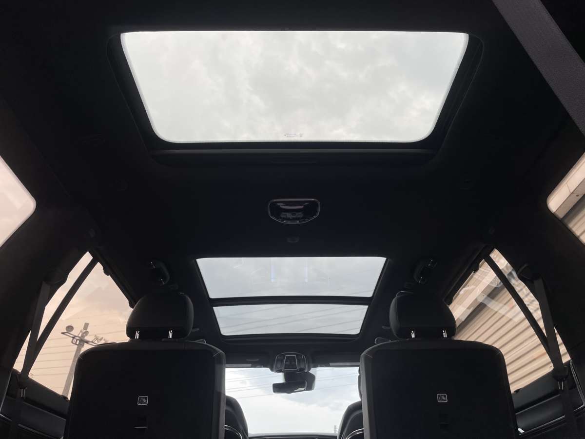 開放感あふれるパノラマルーフ。車内がかなり明るくなります。天井の素材には今や高級車の代名詞とも言われる心地よい手触りのアルカンターラルーフライナーが備わります。