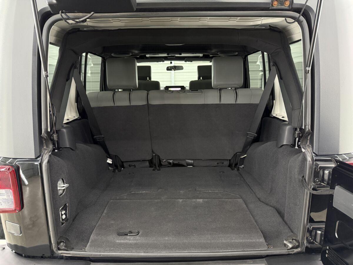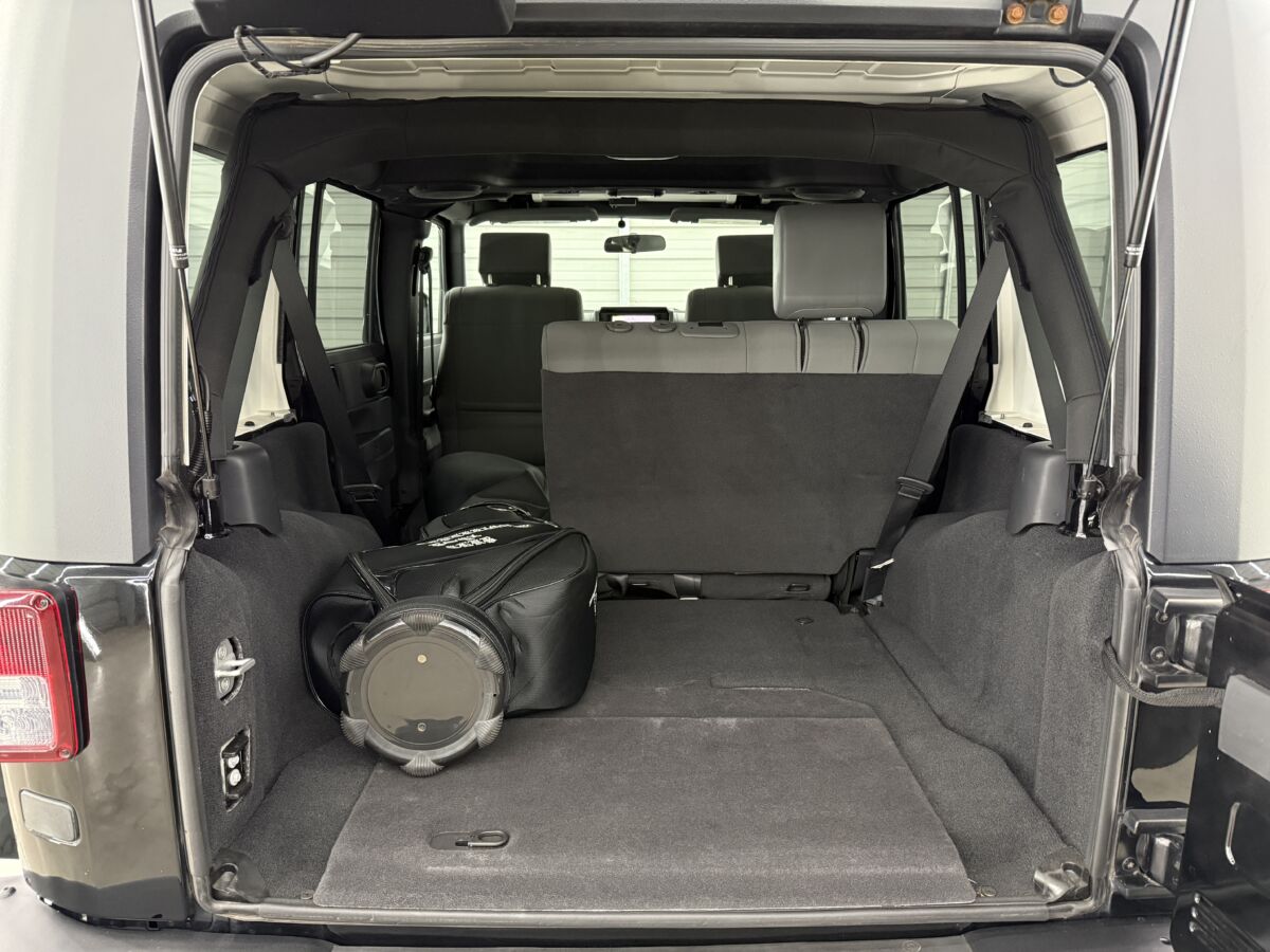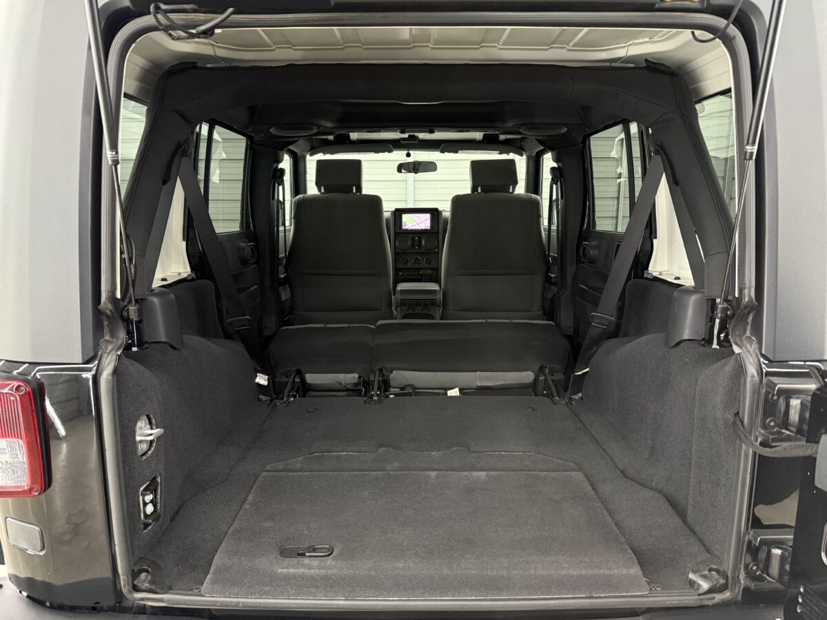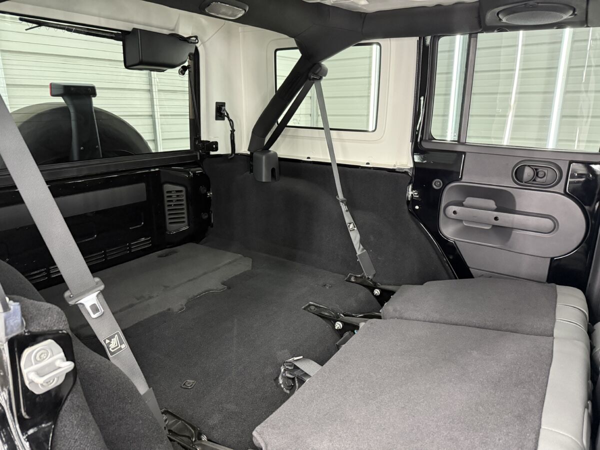 セカンドシートを前に倒すことにより、広いラゲッジスペースが出現します。ラングラーがキャンプやアウトドアフィールドで人気の車ということがよくわかります。車中泊ができるキットなども販売しています。