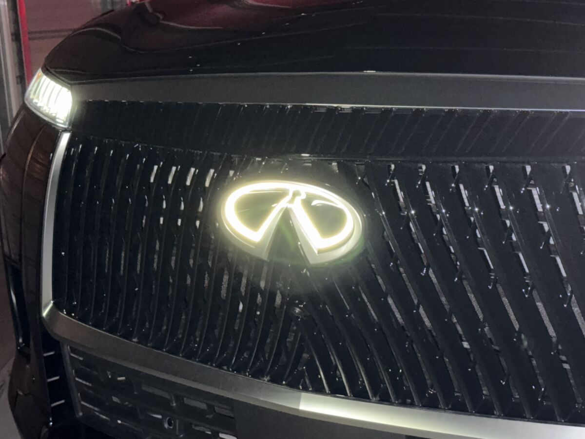 グリル内のINFINITIロゴが光る3Dエンブレムが備わり、存在感がより輝きを増す演出が施されています。