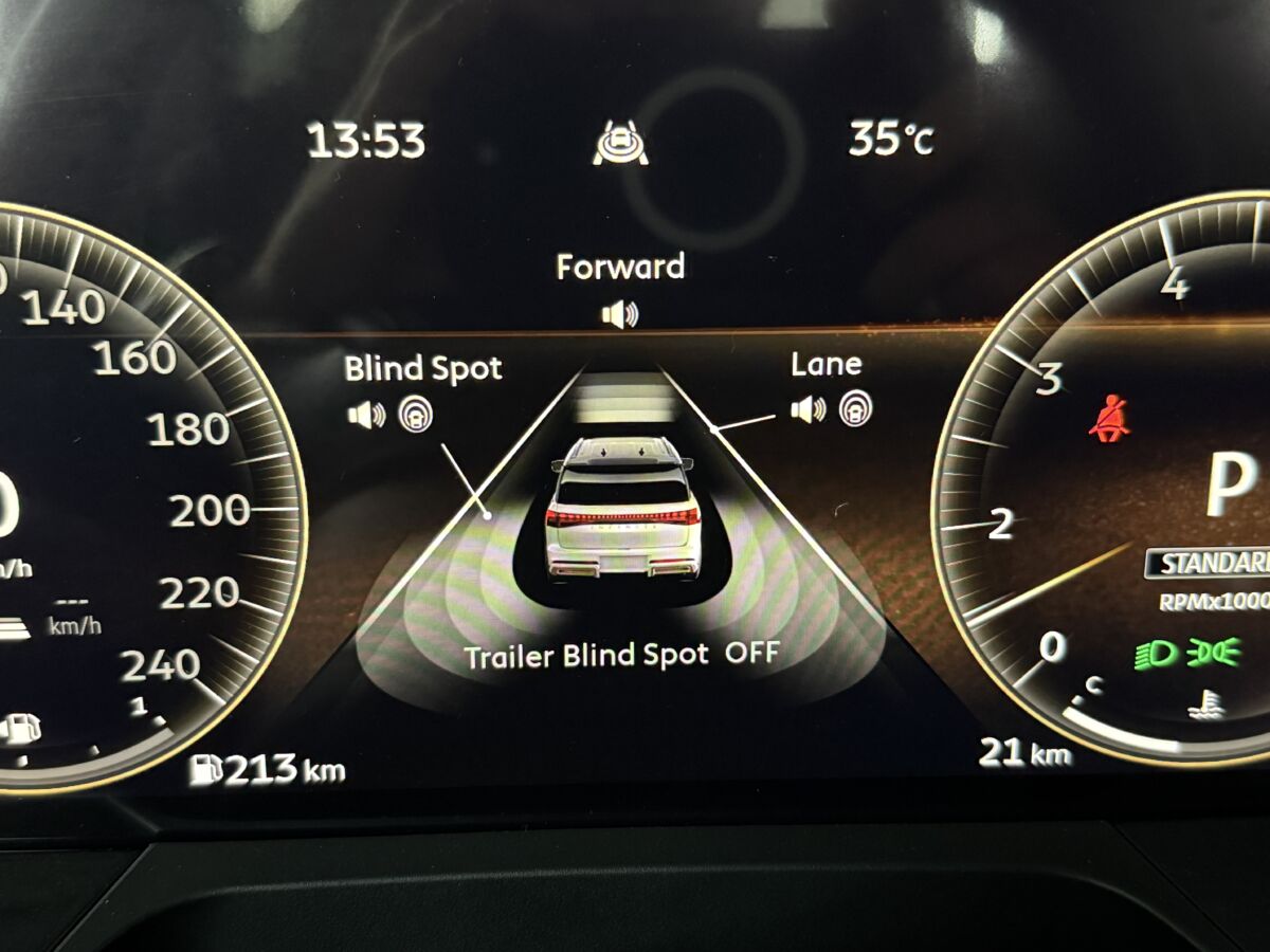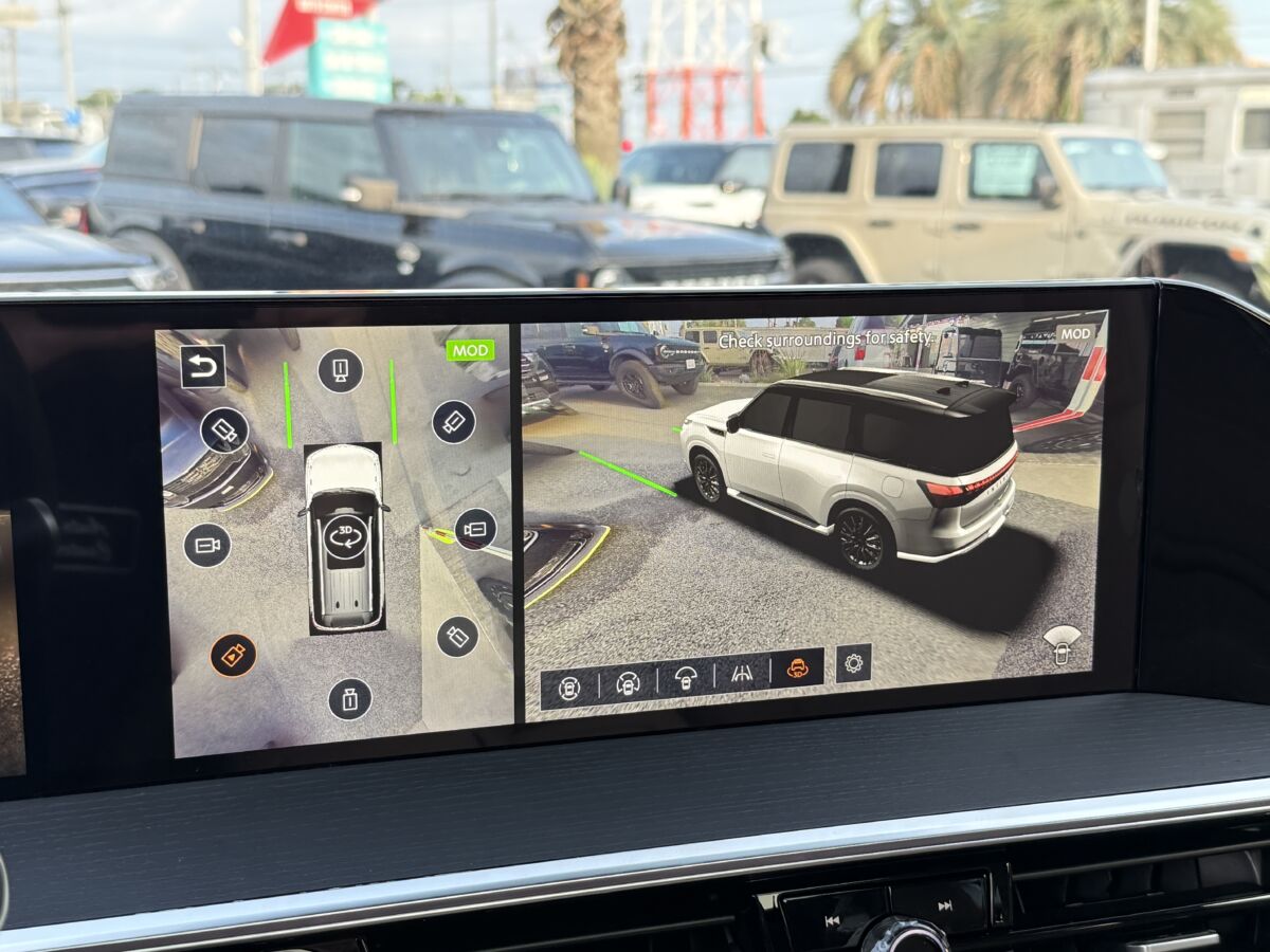 まさに死角なしとも言える新型QX80のカメラワーク。170°の超広角フロントワイドビューに加え、Invisible Hood View(インビジブルフードビュー)は、ボンネットフードの向こう側の見えない障害物を、高度な画像処理技術を活用してモニタリング可能。最新の映像技術により、ドライバーの死角を極限まで無くす試みがなされています。
