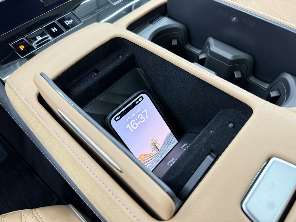 便利なワイヤレスチャージングパッドも標準装備しています。各座席にUSBチャージングポートが備わり、2箇所はメディアの読込が可能。4つは充電用となっています。