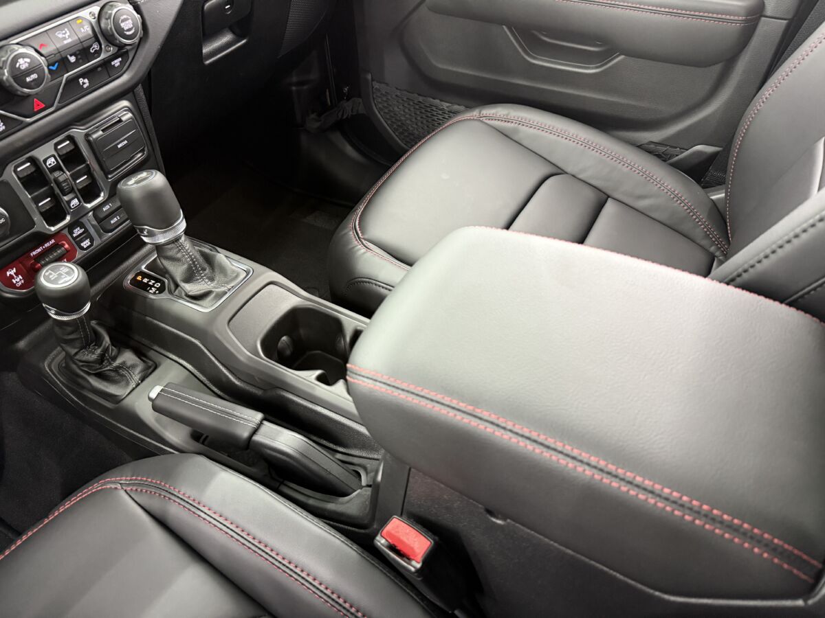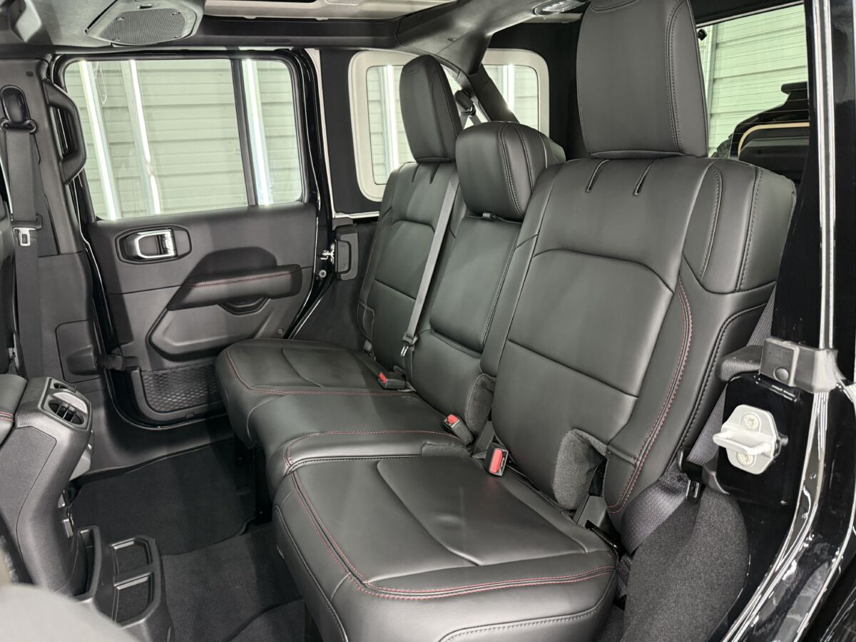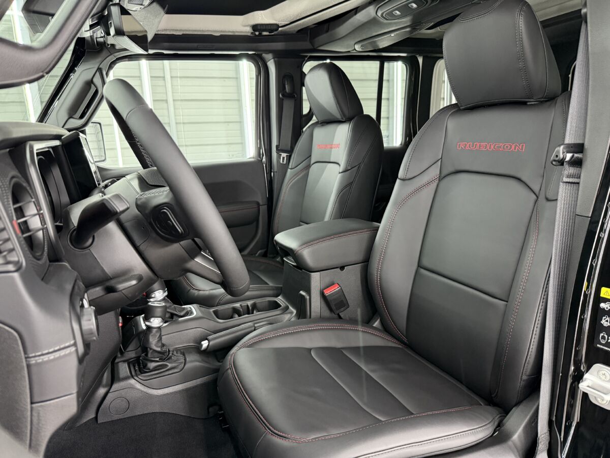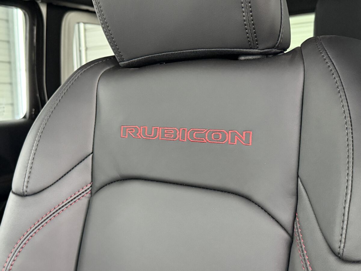レッドステッチが入る専用のブラックナッパレザーインテリア。シートにはRUBICONロゴが誇らしげに刺繍されています。