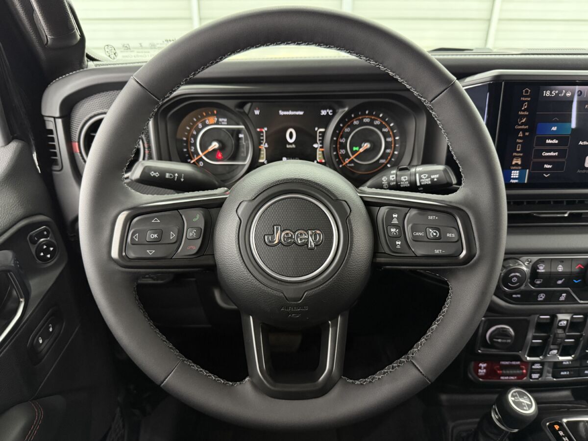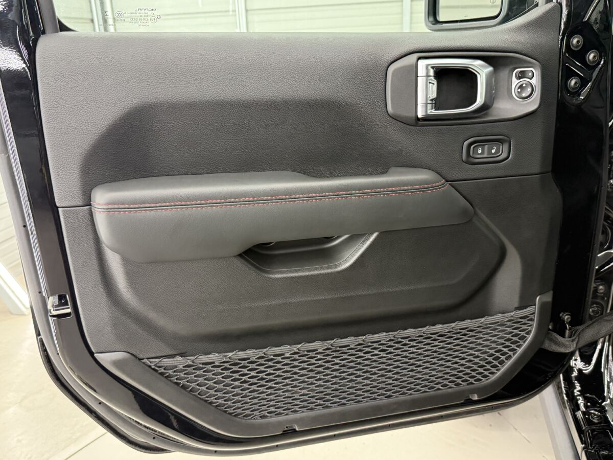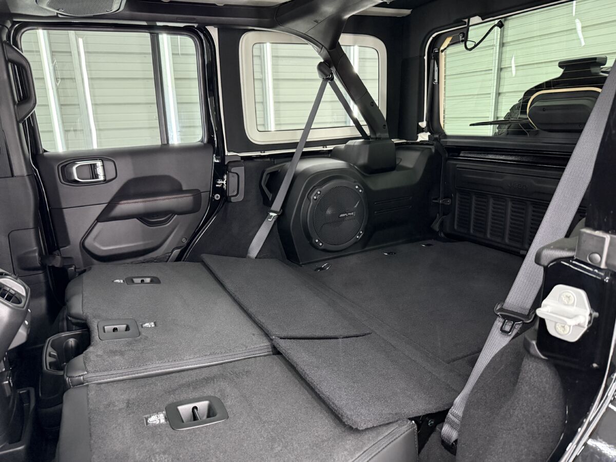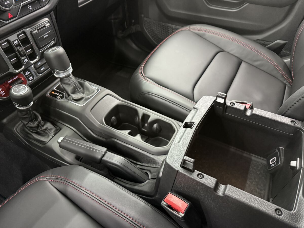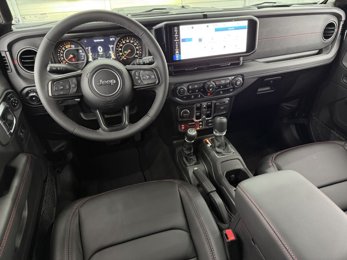 レッドステッチが入る専用のブラックナッパレザーインテリア。シートにはRUBICONロゴが誇らしげに刺繍されています。