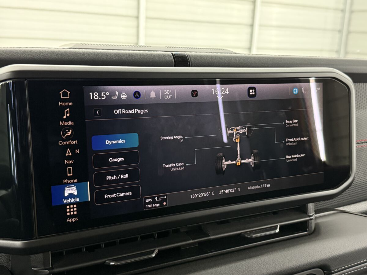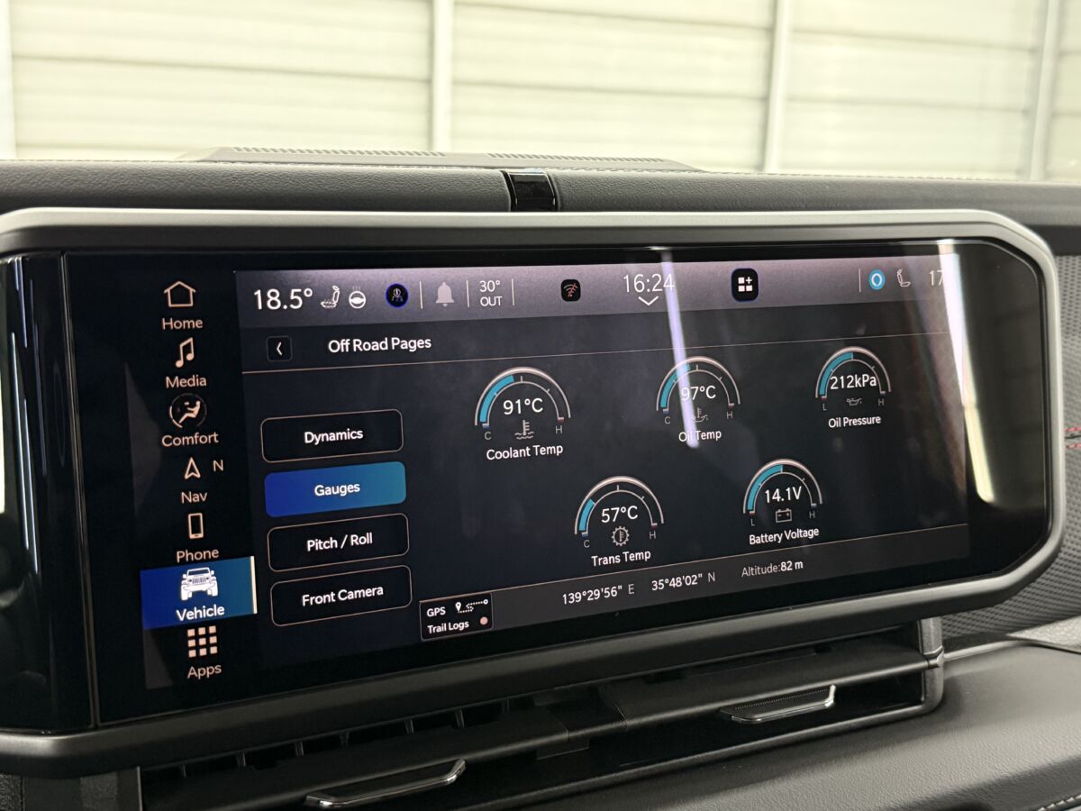 オフロードページではオフロード走行に関する車両情報をモニターで確認することが出来ます。オフロード競技など本格クロカン派の方にもおすすめです!