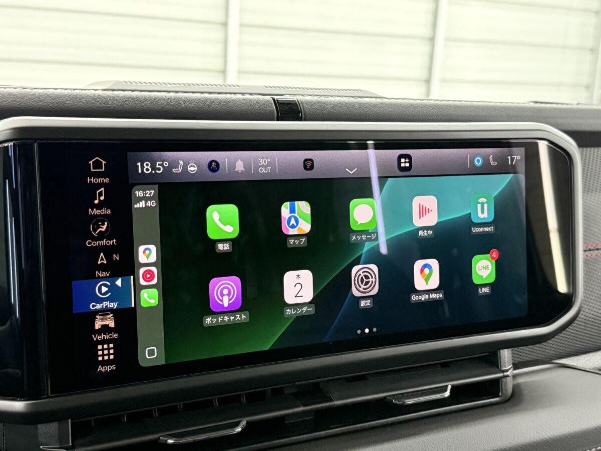 285馬力のV6 3.6リッターエンジン搭載、8速ATとの組み合わせです。ジープと言えばオフロードのイメージですが、街乗りも驚くほど滑らかでパワー感ある走りを体感できます。