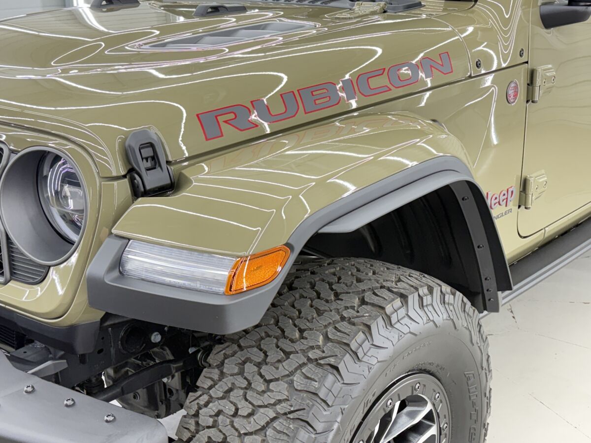 日本未発売となるルビコンXには様々な専用パーツが付いています。ワイルドな三分割スチールバンパーもその一つで、日本仕様のラングラーはフェンダーとバンパーが繋がった樹脂製のため、スチールバンパーに交換するオーナーが圧倒的に多い部分です。