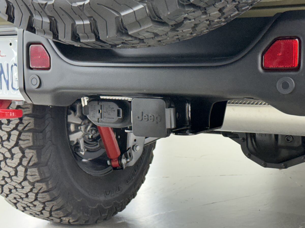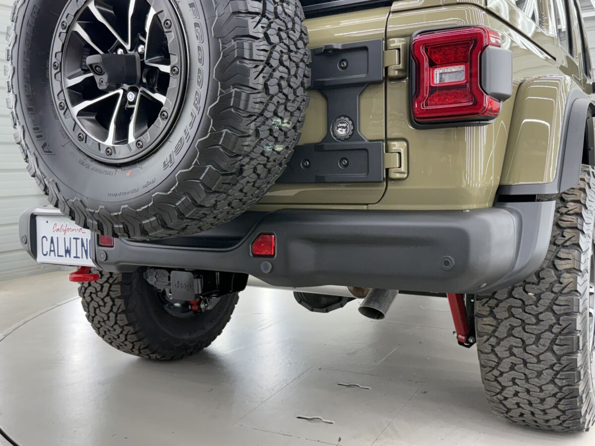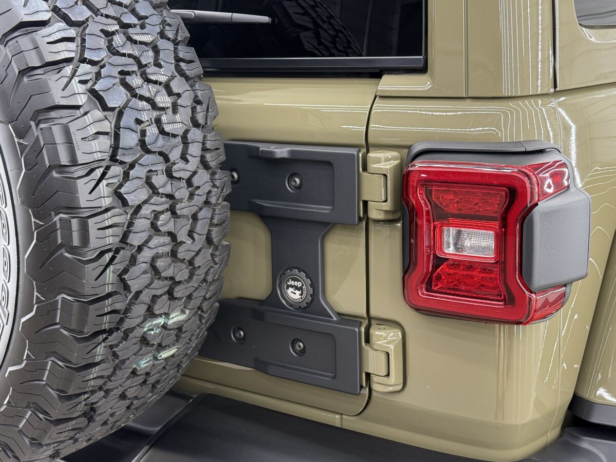 幅広となり重量も増した35タイヤ装着により、リアタイヤキャリアの強度を上げるMOPARヒンジゲートレインフォースメントが装備されます。