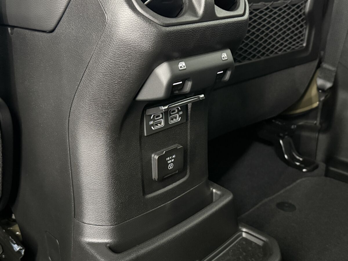 後部席用パワーウインドウスイッチとUSB充電ポート、コンセントが備わります。