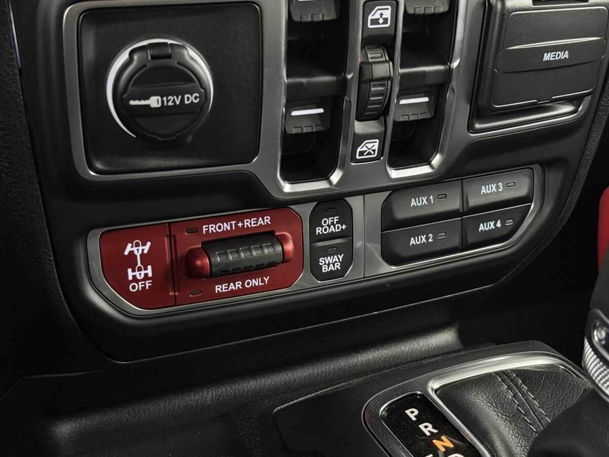 さらにルビコン専用ともいえる4:1 ロックトラックヘビーデューティーパートタイム 4WD システム。セレクトラックを基に、前後のディファレンシャルギアをロックする機能を加え、さらにローギアードな走りでクロールする(ゆっくり進む)ことを可能にしたもの。そのうえ「スウェイバー・ディスコネクト・システム」と称して、サスペンションのストロークを拡大させるためにスタビライザーを切り離す機能も備えます。