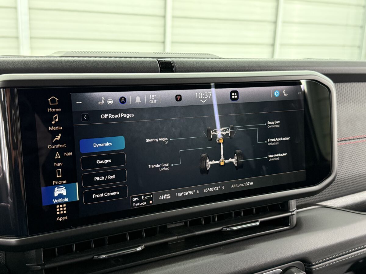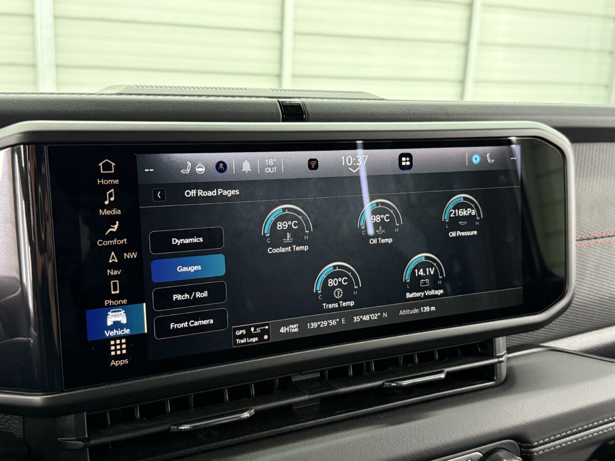 オフロードページではオフロード走行に関する車両情報をモニターで確認することが出来ます。オフロード競技など本格クロカン派の方にもおすすめです!