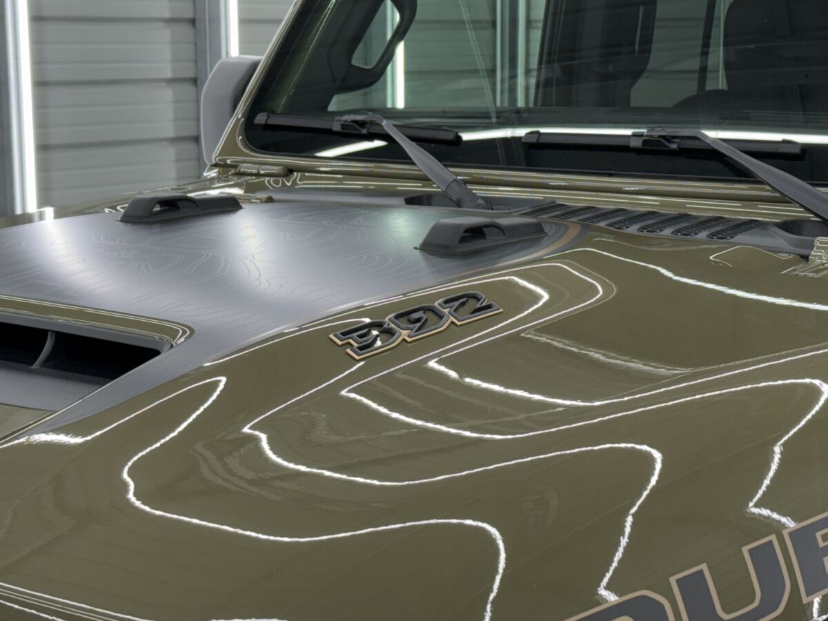 ルビコン392専用となるボンネットフード。巨大なエアインテークと392のエンブレムがタダ者ではない雰囲気を醸し出しています。