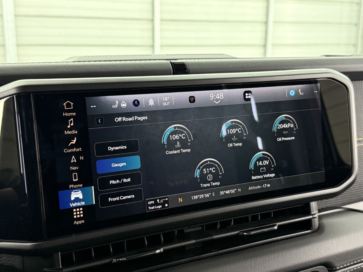 オフロードページではオフロード走行に関する車両情報をモニターで確認することが出来ます。オフロード競技など本格クロカン派の方にもおすすめです!