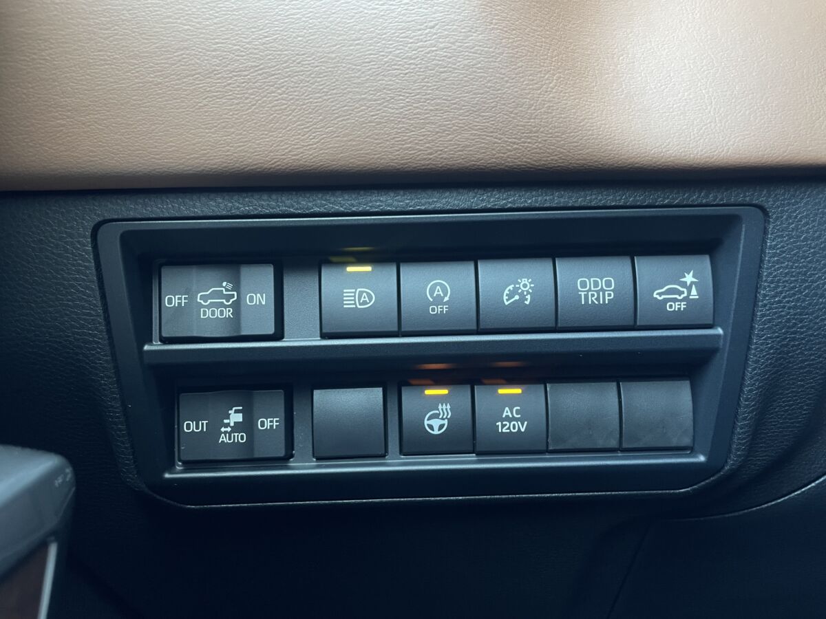 ステアリングヒーターやオートハイビーム、アイドリングストップなどのスイッチが並びます。