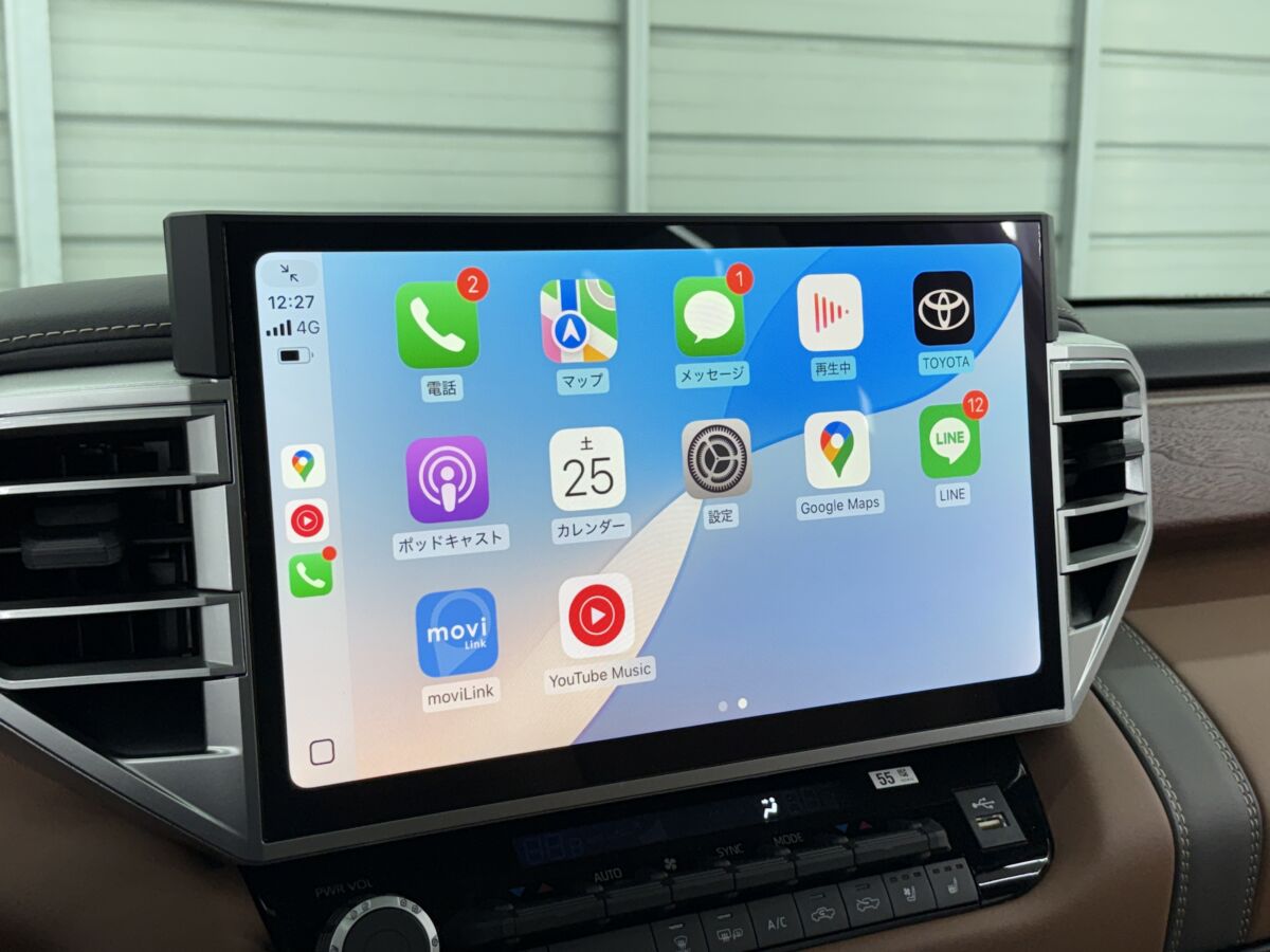 お手持ちのスマホとリンクさせる事により、スマホ搭載のナビやアプリなどを純正画面に映し出し、使うことが出来る優れものです。ステアリングの発話ボタンを使ってSiriにも対応する優れものです