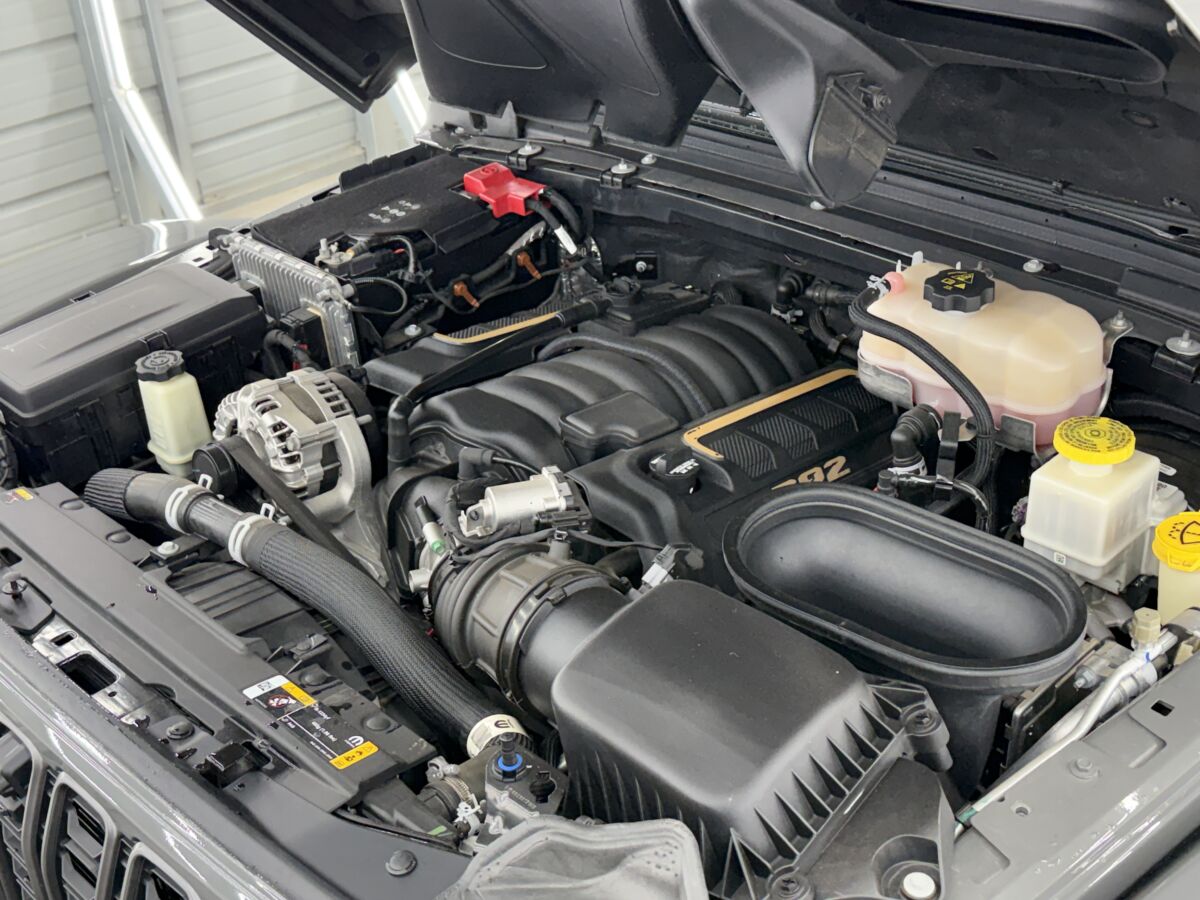 470馬力のV8 392HEMIエンジン搭載、純正で可変マフラーが付いているのでエンジンに火を入れた瞬間の爆発音のようなワイルドなV8サウンドにヤラレてしまう方が続出のモンスターラングラーです!