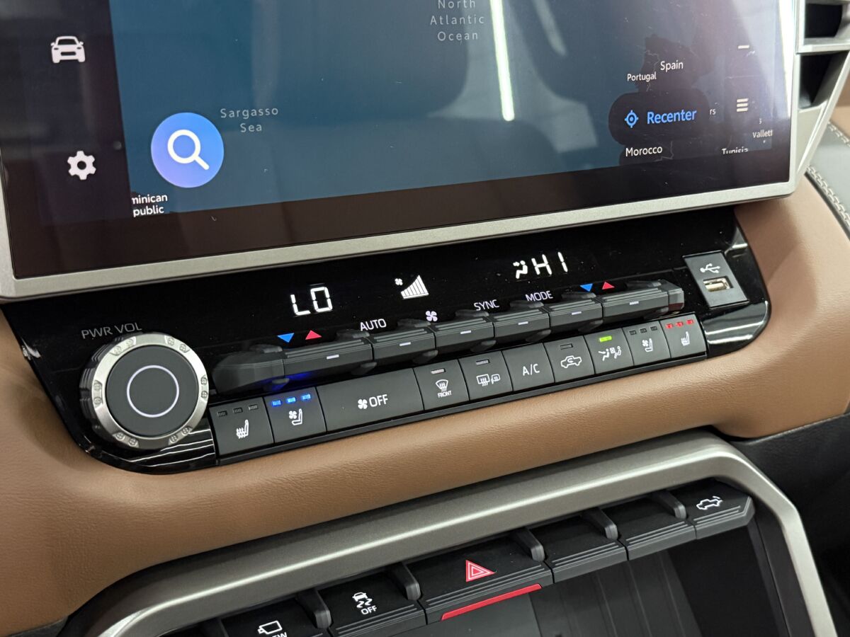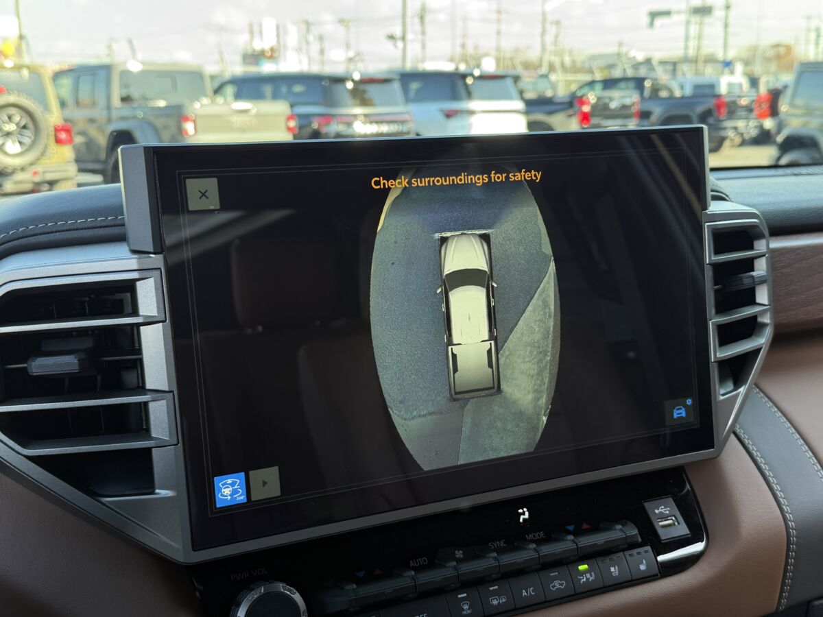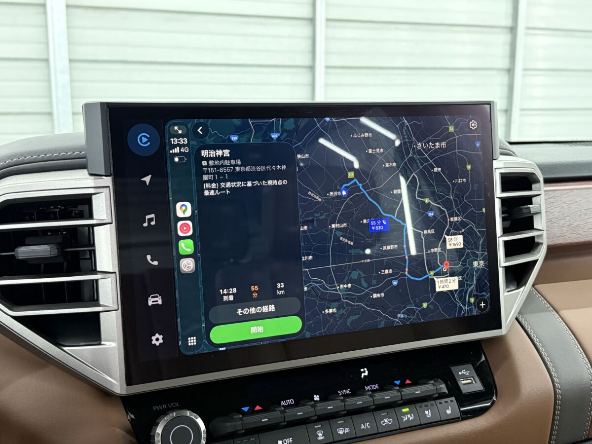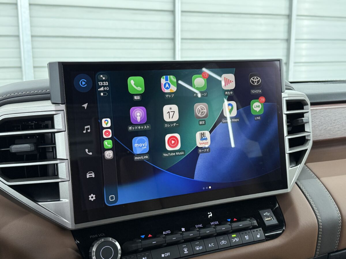 タンドラシリーズ最高級グレード 1794エディションは14インチモニター、パノラマルーフ、JBL12スピーカーなど、豪華な装備が満載です。右側に☆1794のロゴがエンボス加工されています。