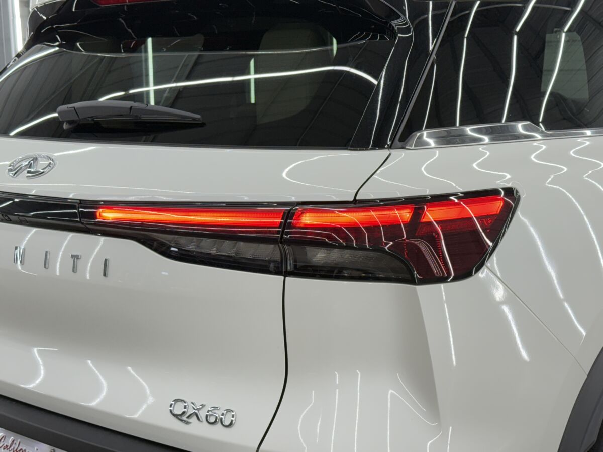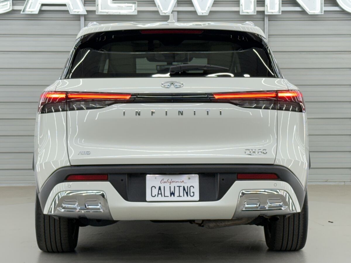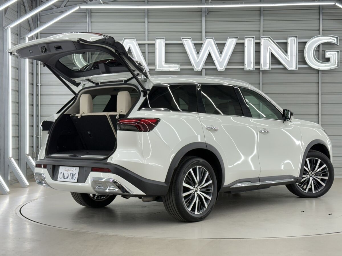 左右を繋ぐフルワイドLEDテールランプが夜間でも存在感を放ち、立体的に配置された「 INFINITI 」レタリングがブランドの格を主張します。