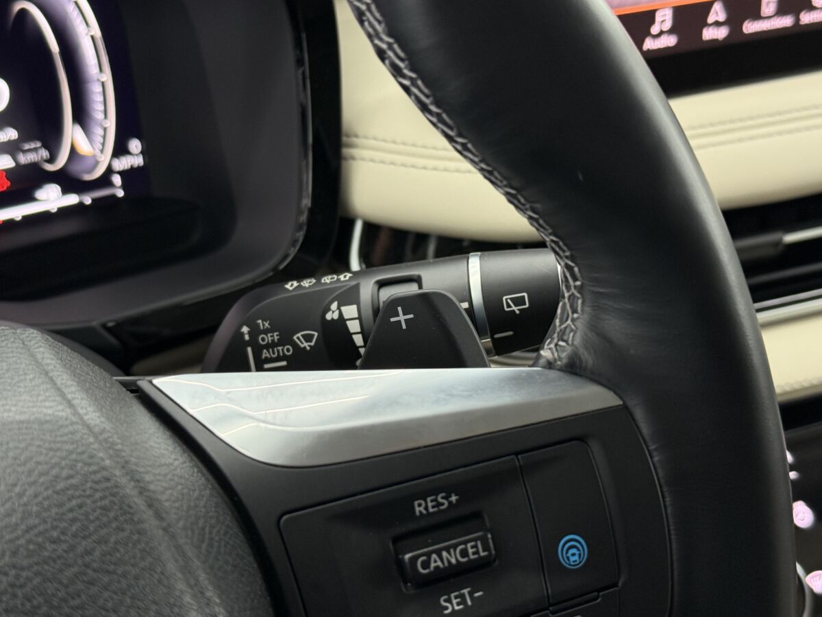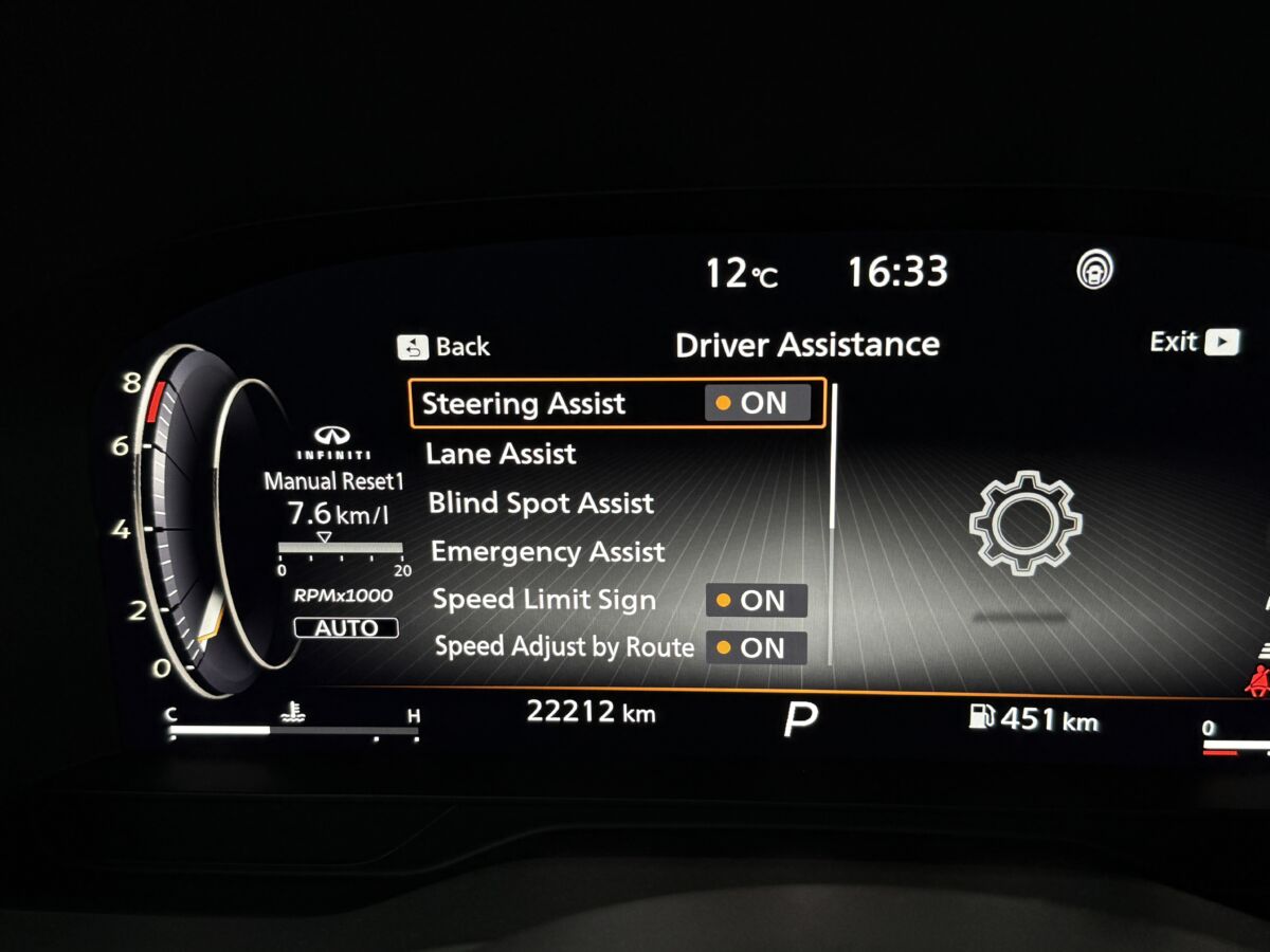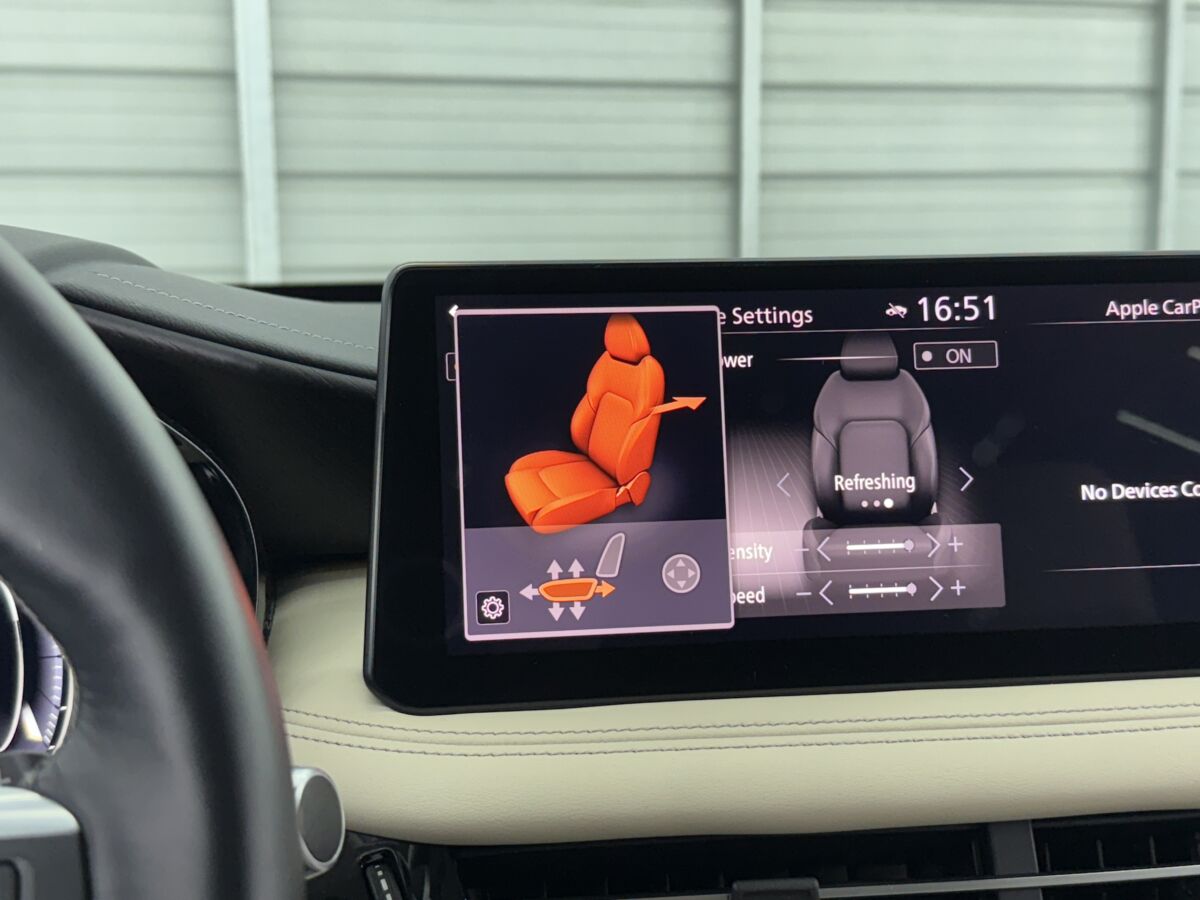 上質さと操作性を両立したインフィニティらしいコックピット!手に吸い付くような本革ステアリングは、長時間のドライブも疲れにくく、握った瞬間にクラスの違いを感じさせます!更には、パドルシフトを装備し、SUVでありながらドライバーズカーとしての楽しさもしっかり備えております!