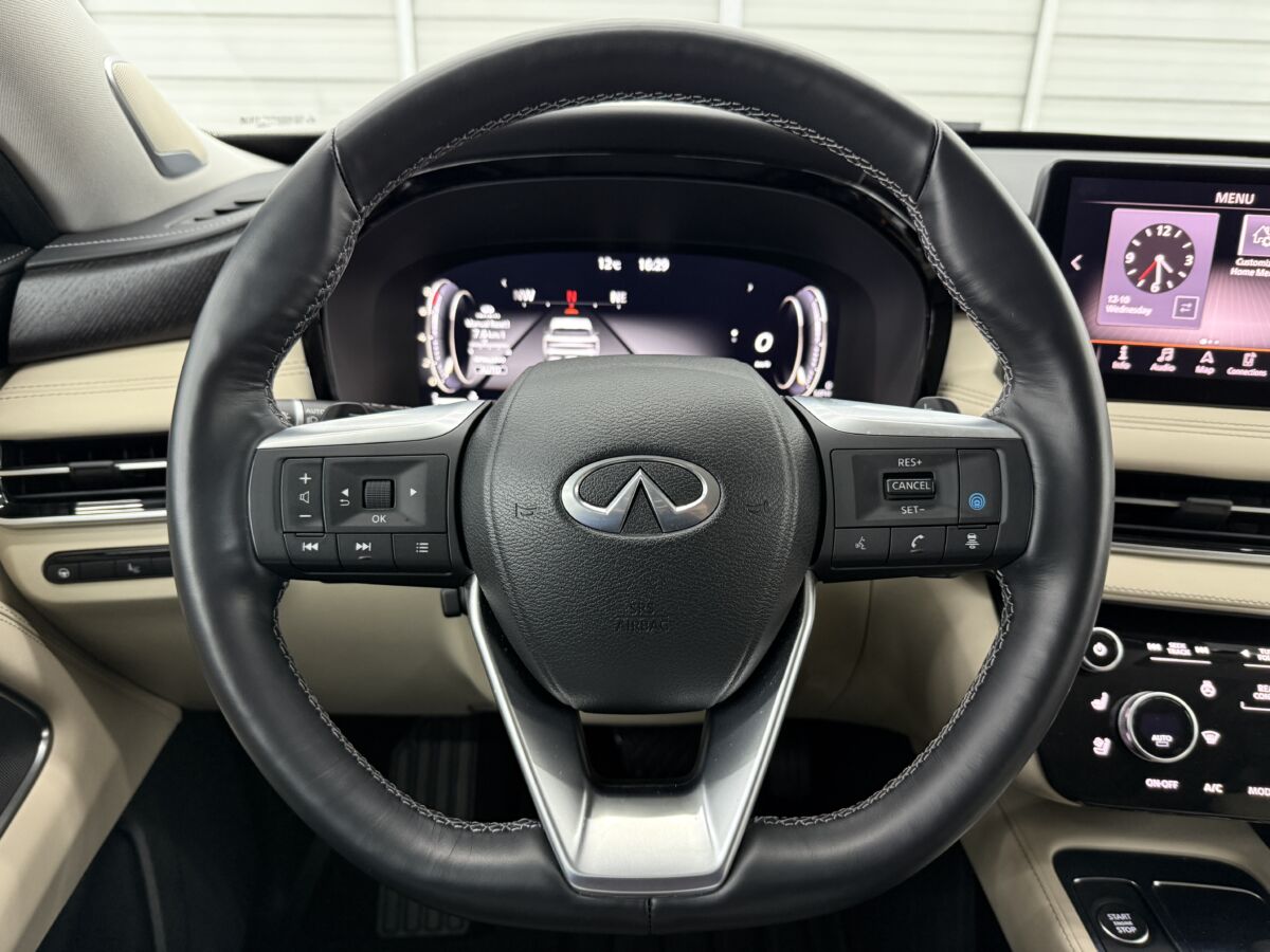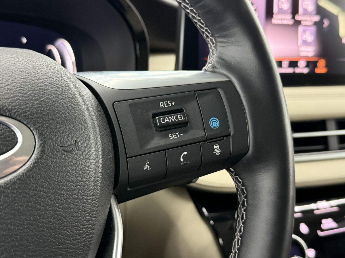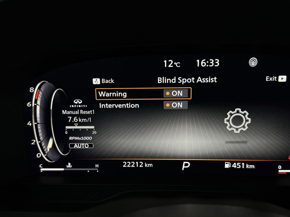 上質さと操作性を両立したインフィニティらしいコックピット!手に吸い付くような本革ステアリングは、長時間のドライブも疲れにくく、握った瞬間にクラスの違いを感じさせます!更には、パドルシフトを装備し、SUVでありながらドライバーズカーとしての楽しさもしっかり備えております!