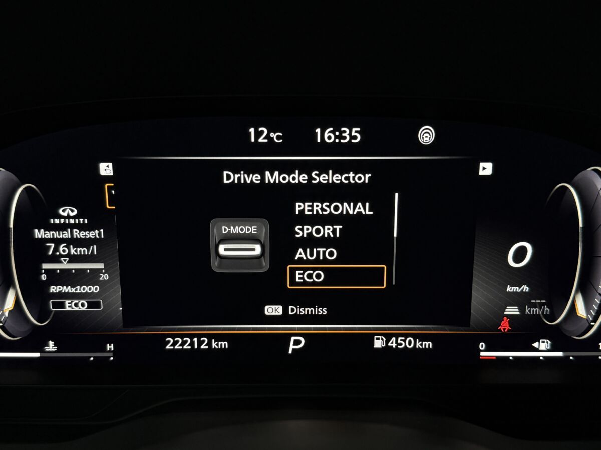 ドライブモードセレクター D-MODEが搭載されており、走りをシーンに合わせて自在に切替が可能となっております。AUTO・ECO・SPORT・PERSONALの4つのドライブモードから選択が可能で、街乗りから高速走行まで、状況に応じた最適な走りを体感いただけます。