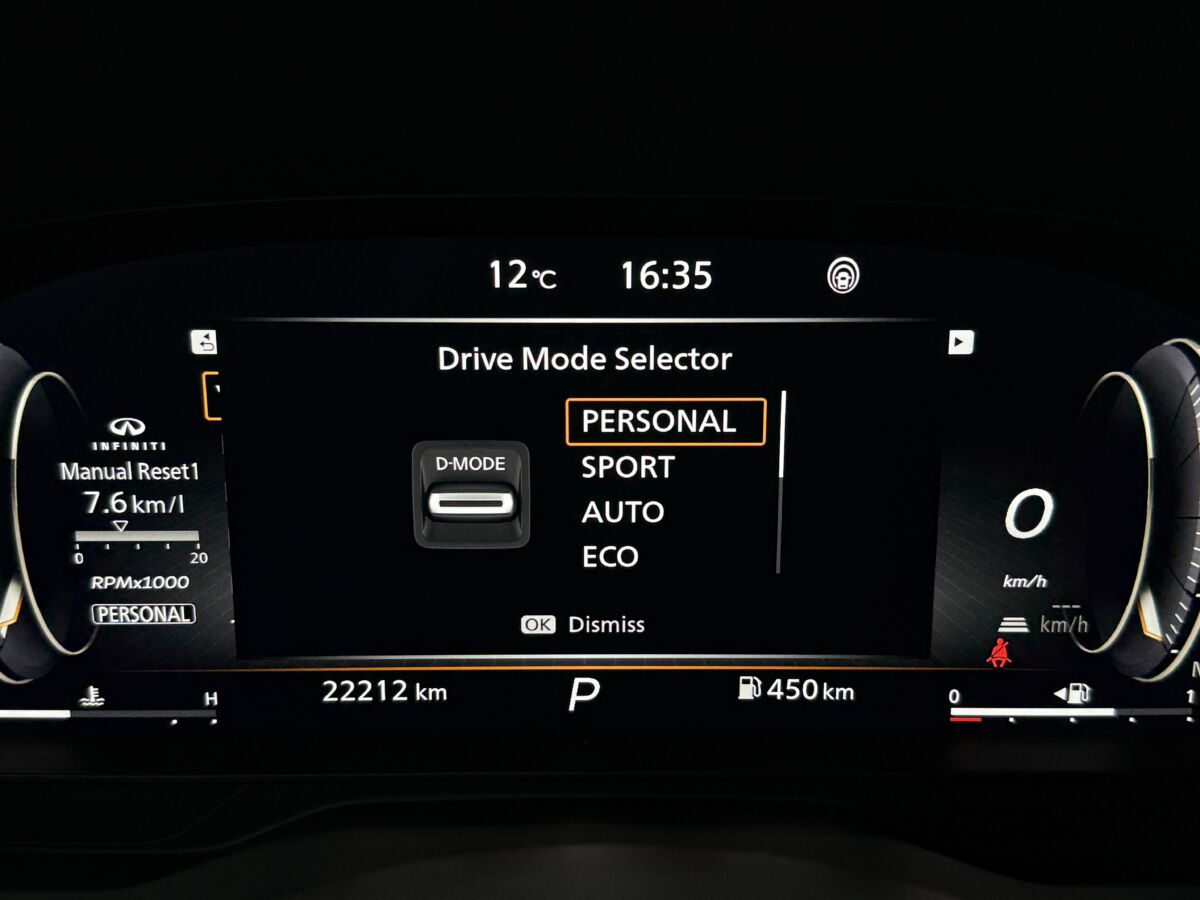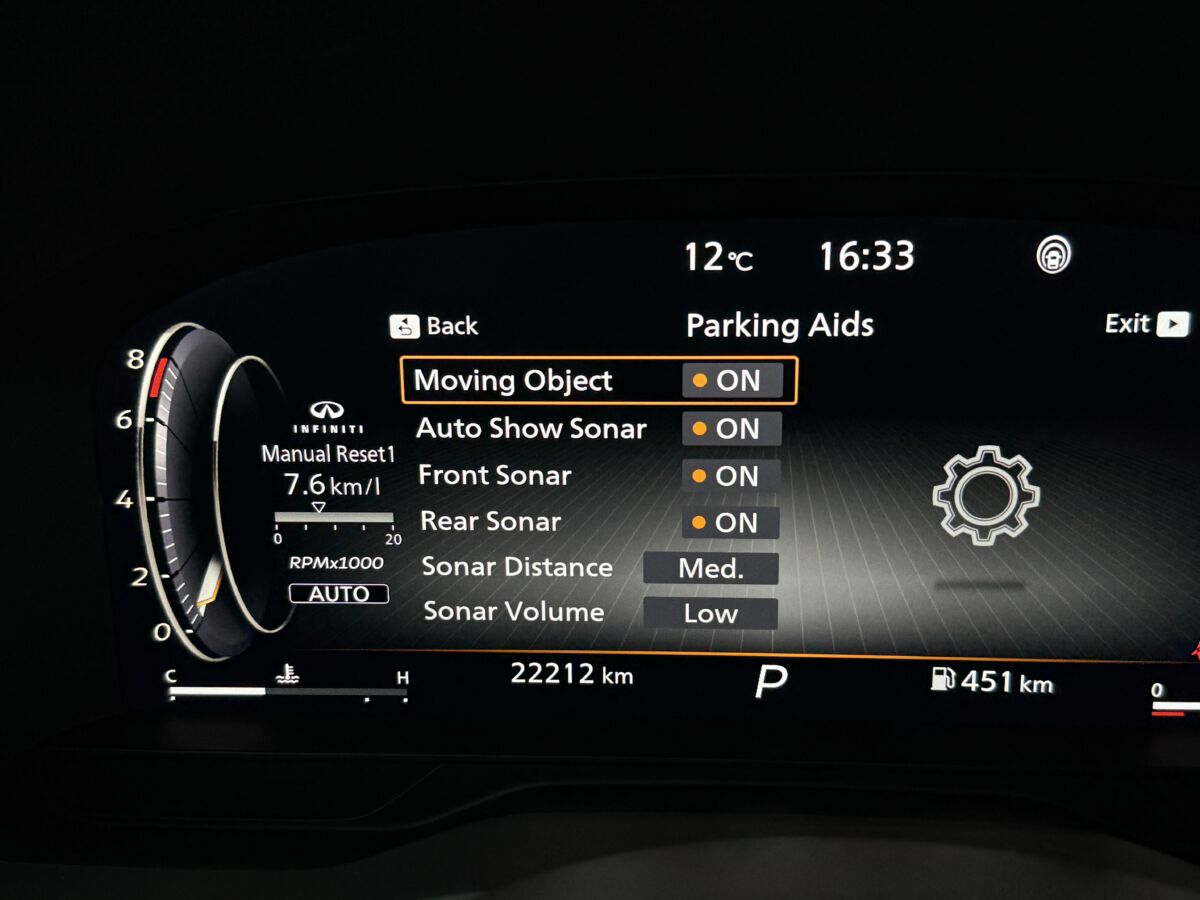上質さと操作性を両立したインフィニティらしいコックピット!手に吸い付くような本革ステアリングは、長時間のドライブも疲れにくく、握った瞬間にクラスの違いを感じさせます!更には、パドルシフトを装備し、SUVでありながらドライバーズカーとしての楽しさもしっかり備えております!