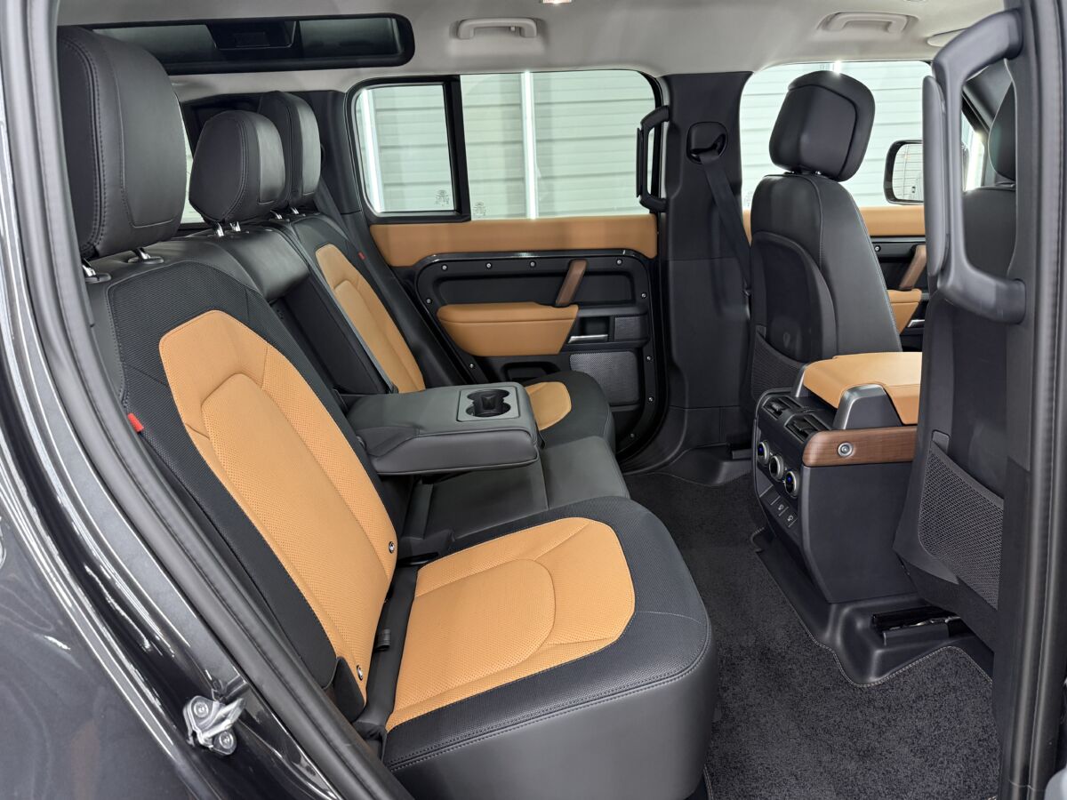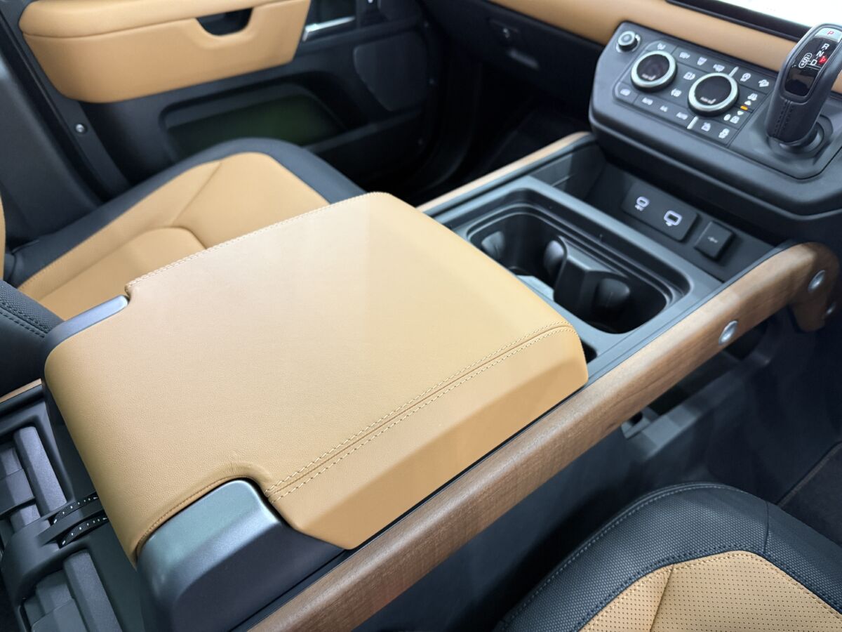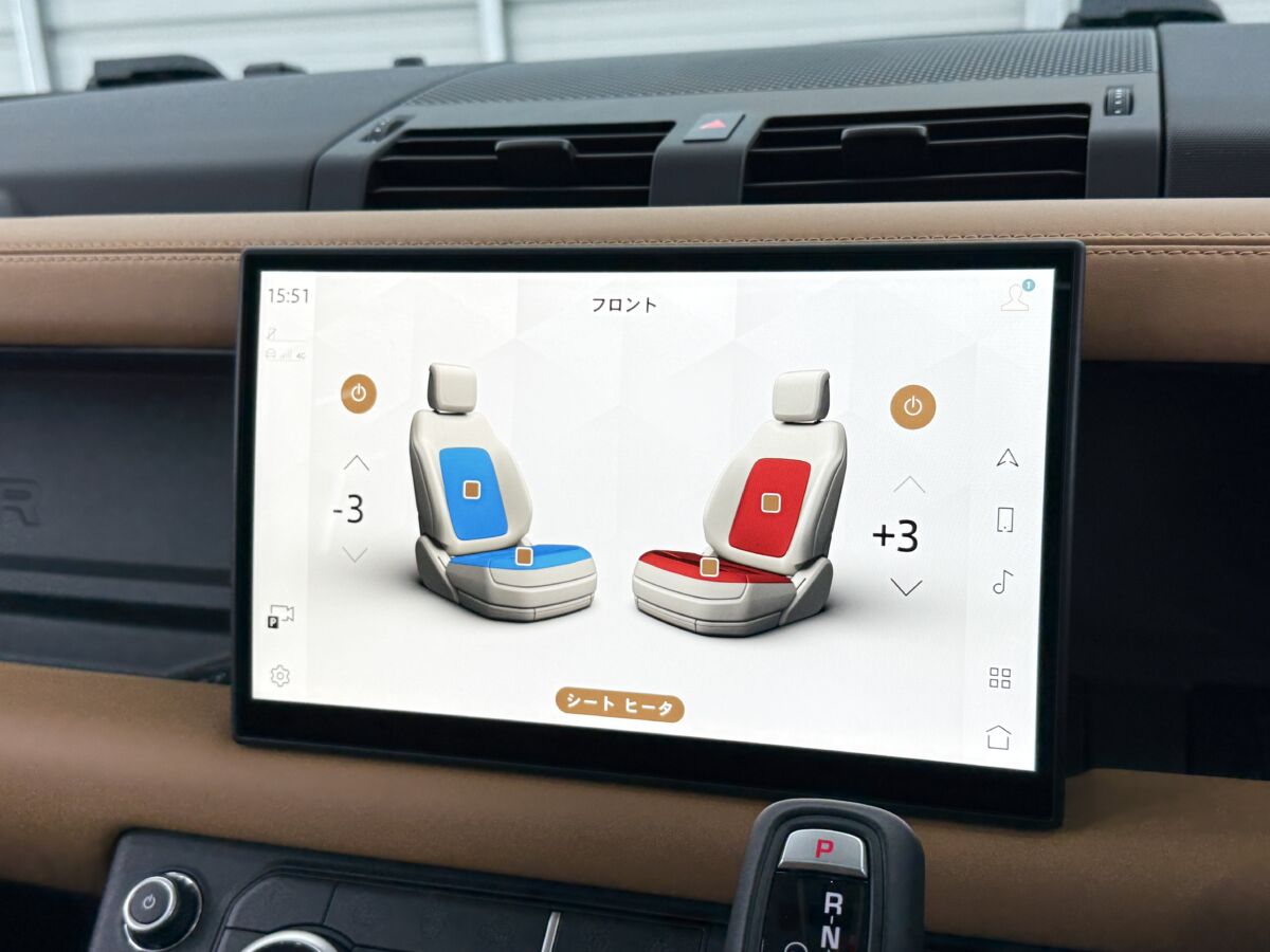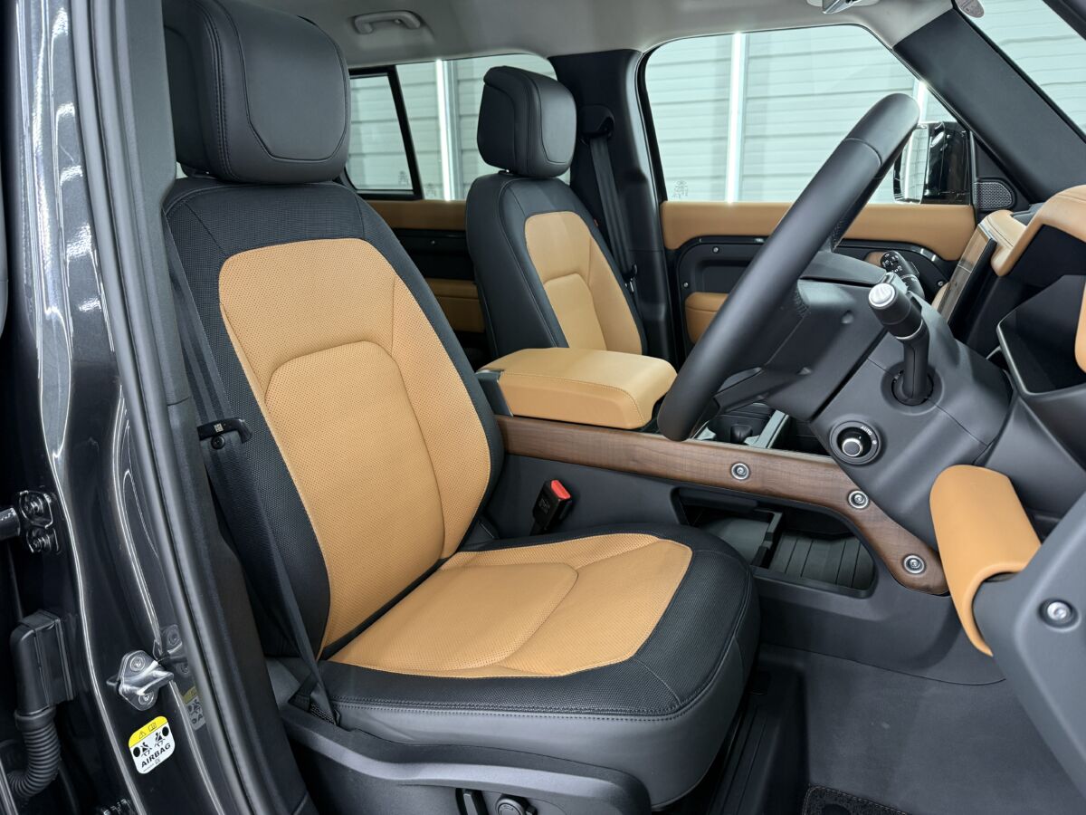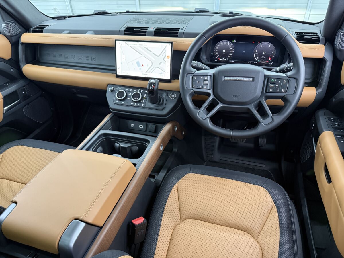 無骨なディフェンダーのイメージを、心地良く裏切るインテリア!上質なレザーと堅牢な造形を融合させた室内は、ラグジュアリーSUVとしての完成度の高さを物語ります。