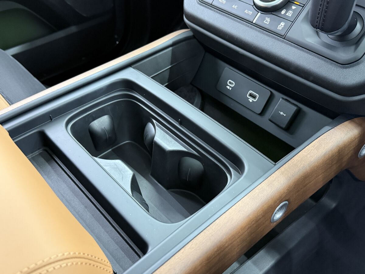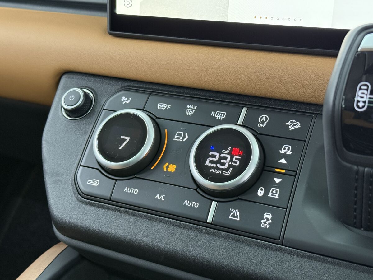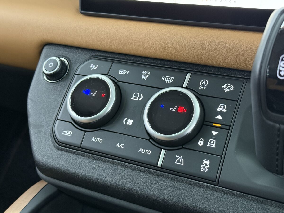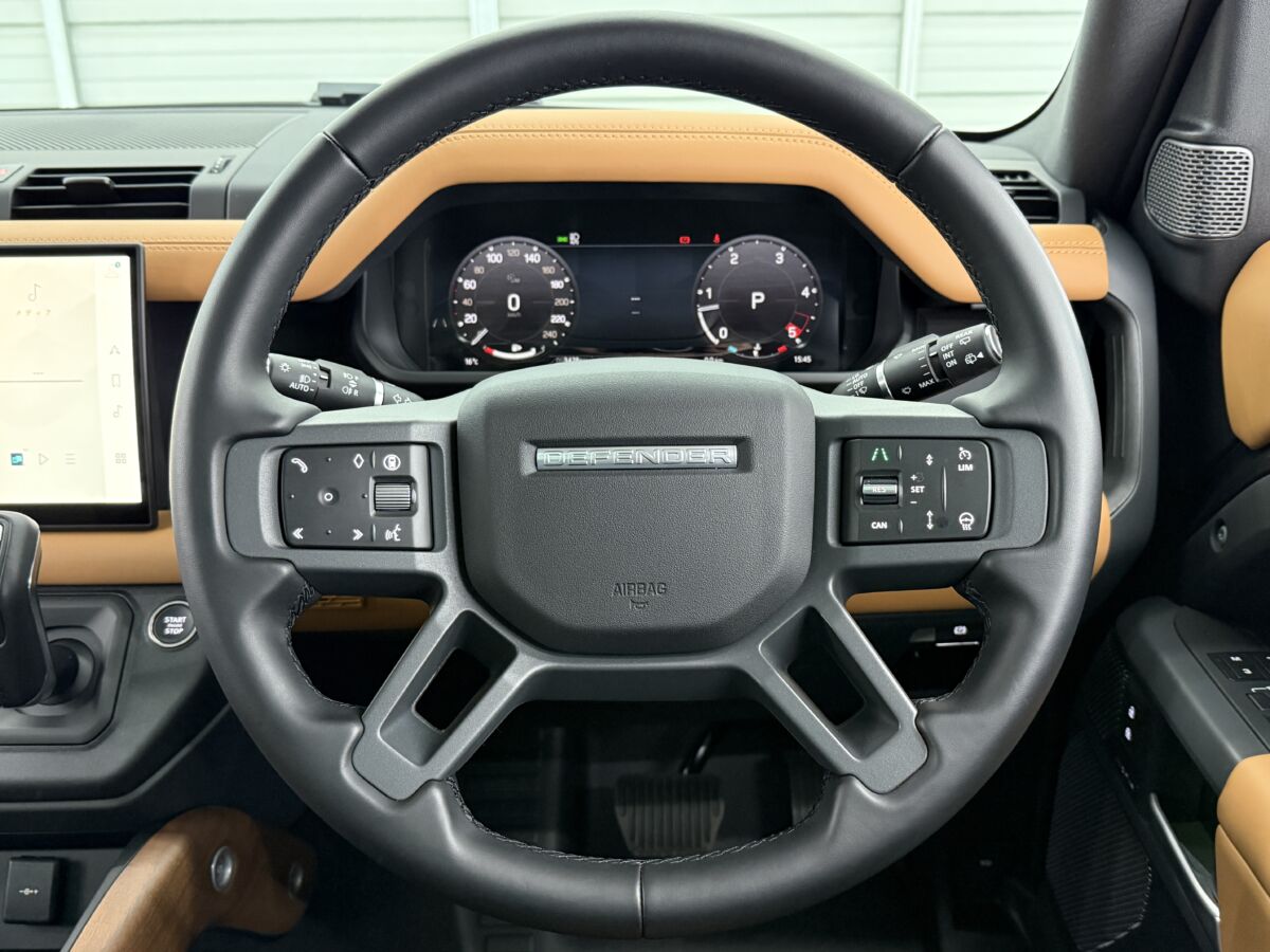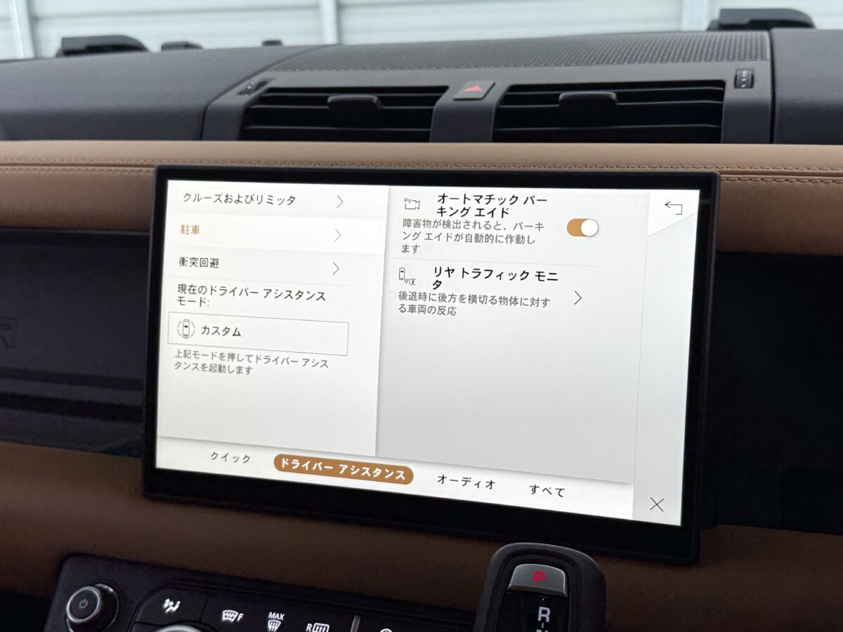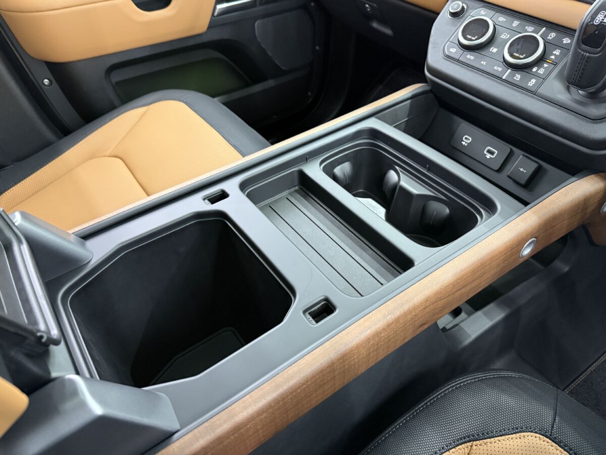 無骨なディフェンダーのイメージを、心地良く裏切るインテリア!上質なレザーと堅牢な造形を融合させた室内は、ラグジュアリーSUVとしての完成度の高さを物語ります。