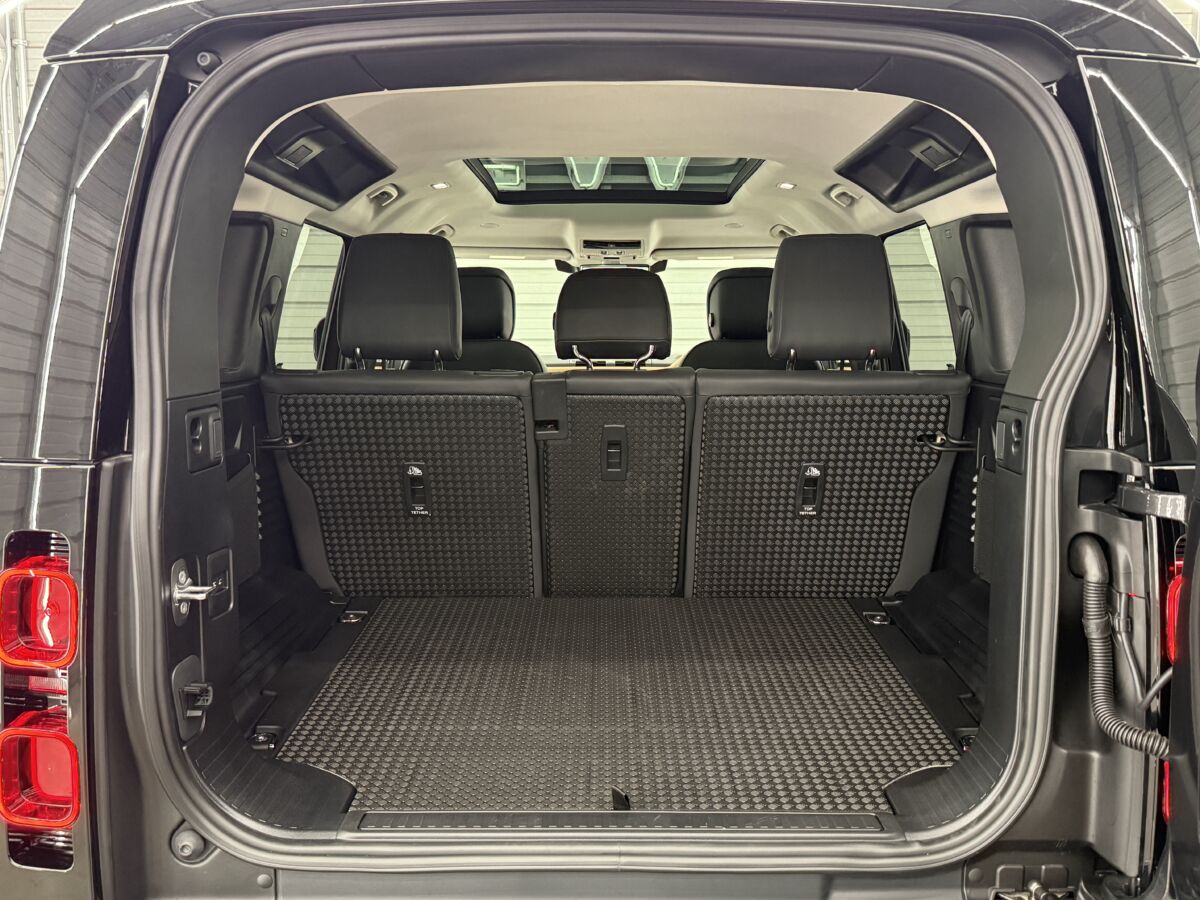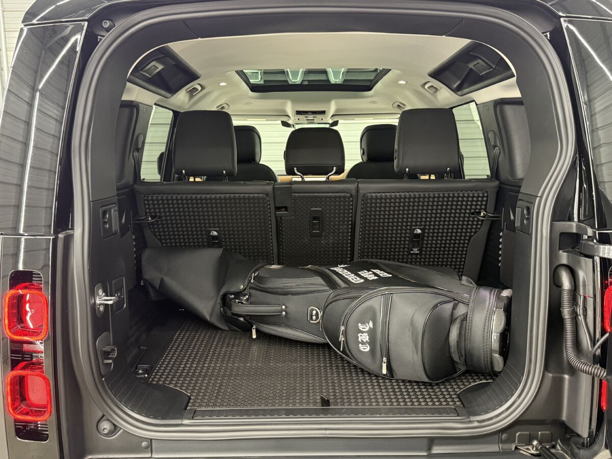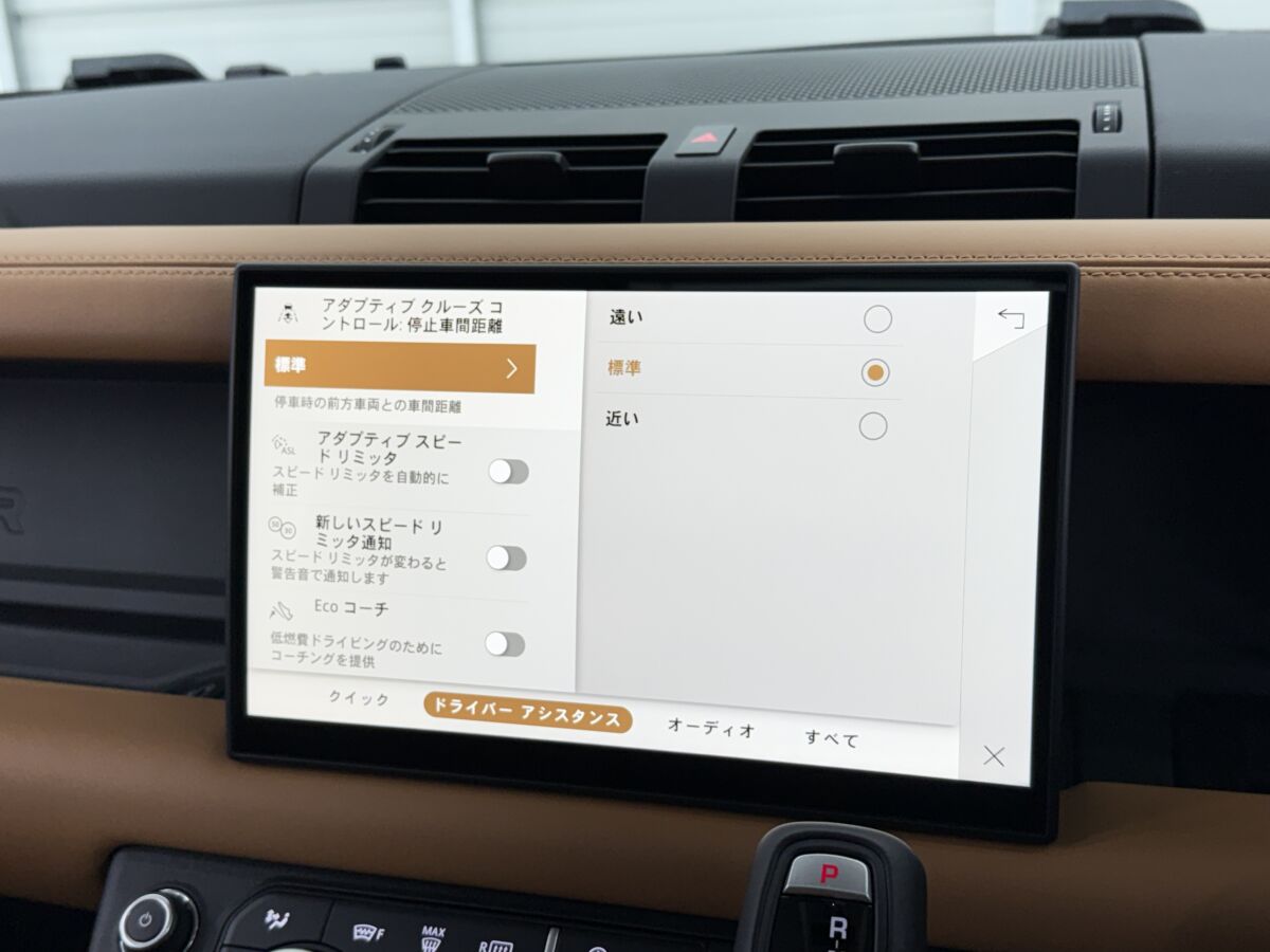 車名の110は先代モデルのホイールベースが110インチ(2,794mm)であったことに由来し、現行モデルのホイールベースは3,020mmと、その数値を大きく超えています。電子制御エアサスペンションとアダプティブダイナミクスが組み合わされたエアサスペンションパックも備わっており、室内から車高調整が可能です。