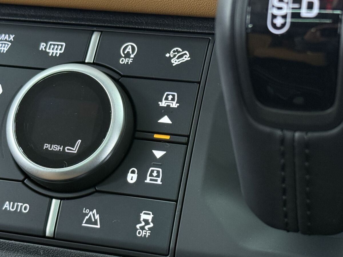 エアコンパネルと共に、車高調整エアサス、ヒルディセントシスト、オートストップキャンセル、トラクションコントロール、シートヒーター&ベントレーション(クーラー)の各スイッチが明確でわかりやすいのが特徴です。
