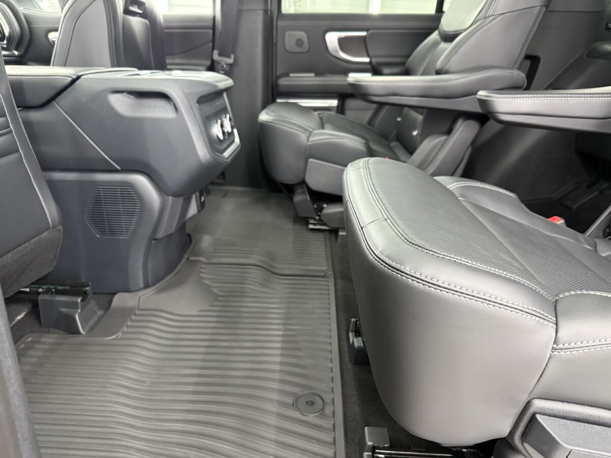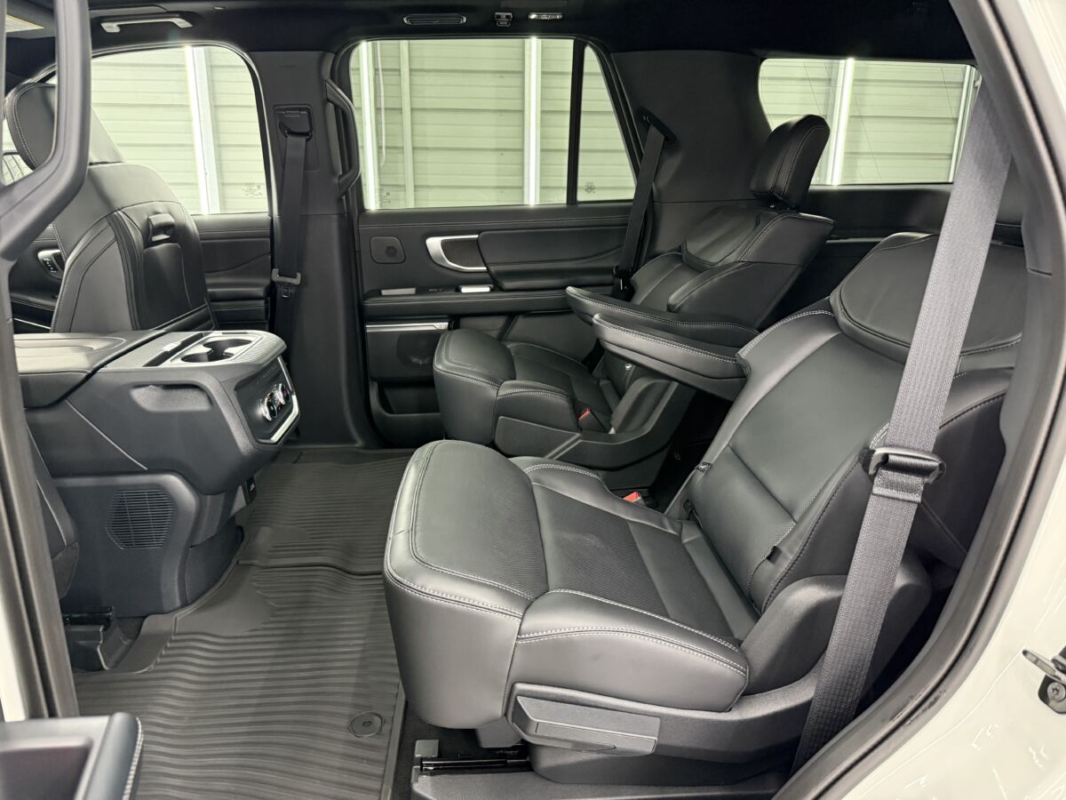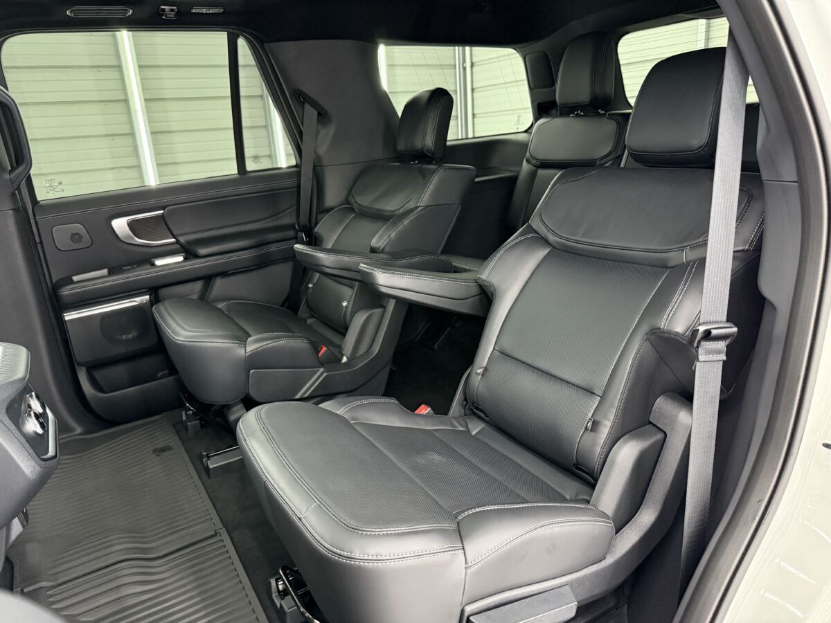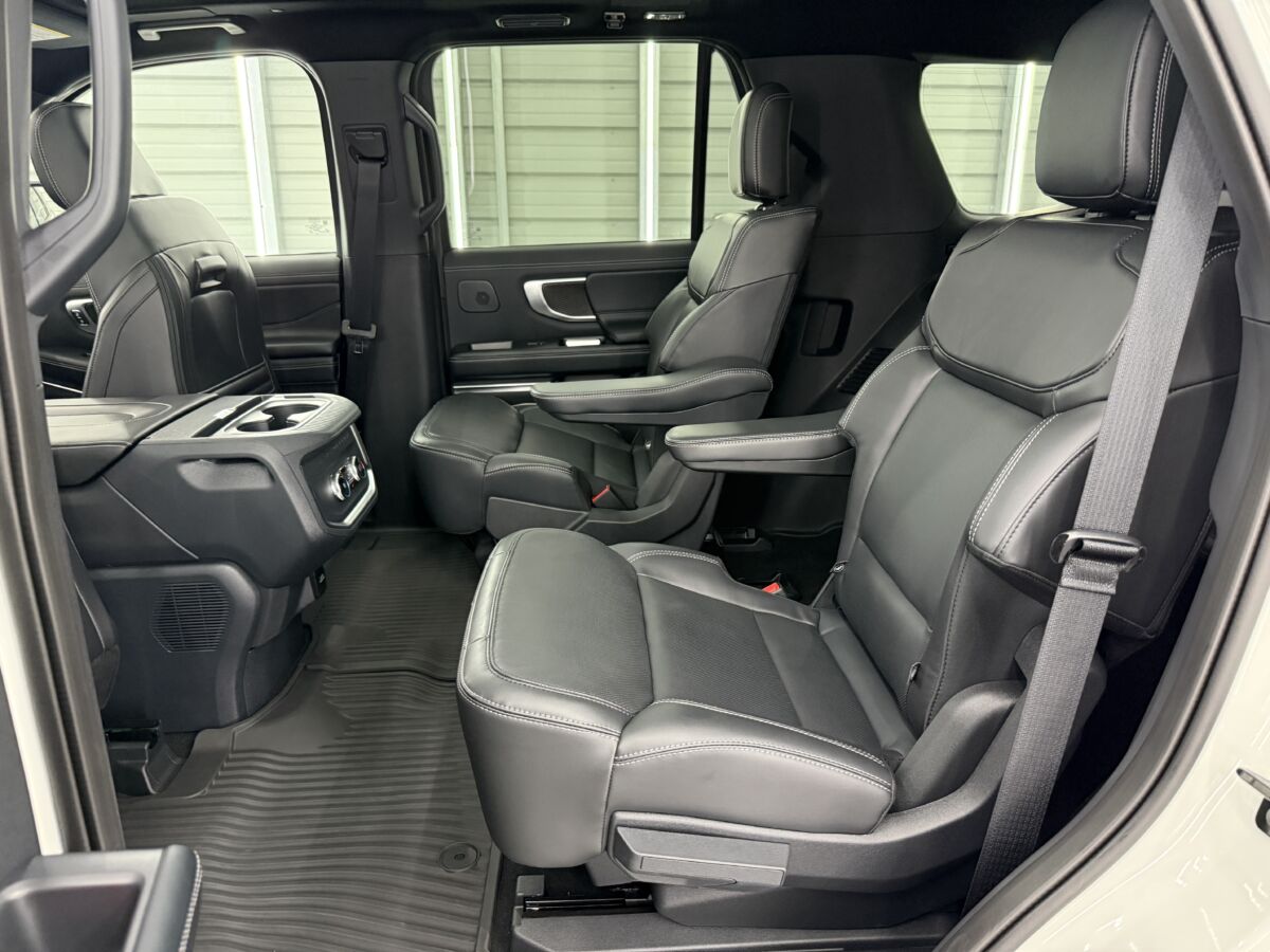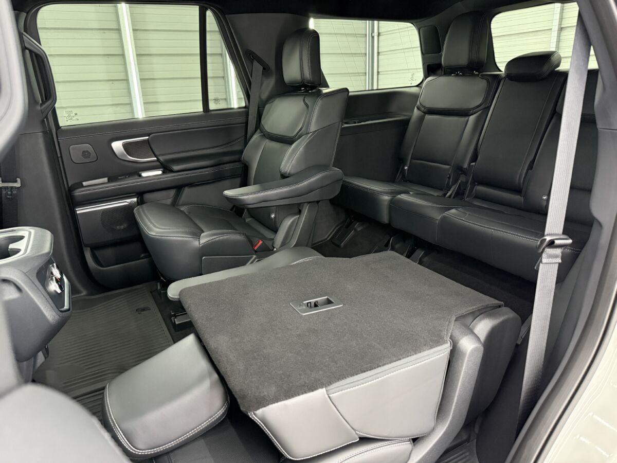 何と言ってもエクスペディション最大の特徴といえば、セカンドシートが大きくスライドする足元の広さ!! これまでのSUVでは考えられないほど広く、大人が足を組んでゆったりと座れる広さが自慢です。さらにシートリフトしてサードシートに行きやすくなります。
