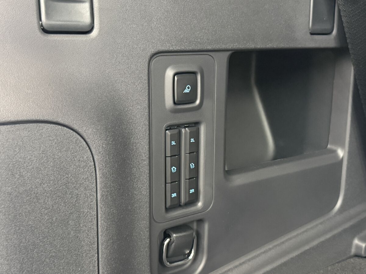 スイッチ一発でフルフラットに早変わり!リヤゲートを開けたインテリアパネルの左側にあるスイッチ操作でセカンドシートフォールディング、サードシートの電動格納が出来ます。