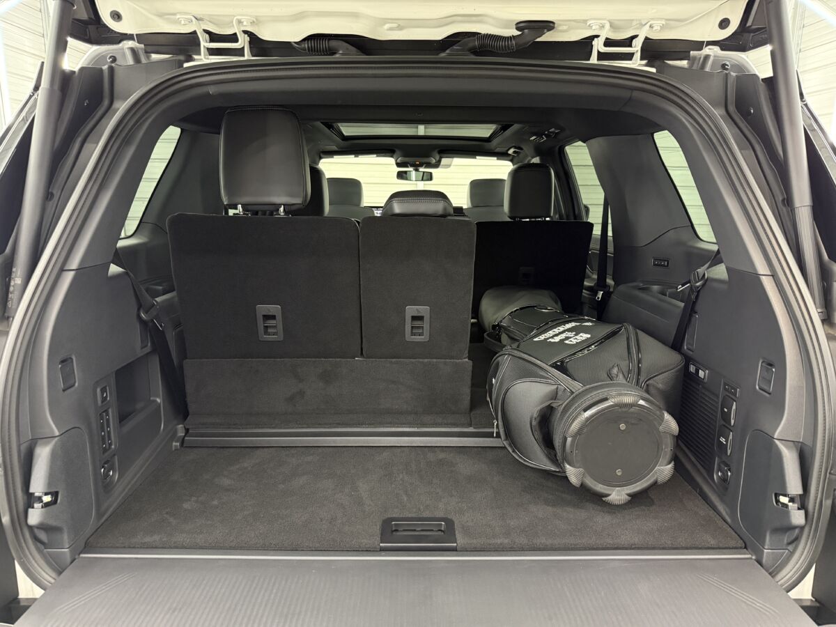 サードシートはお馴染みのパワーフォールディングフルフラットに、室内スイッチからは、リクライニング機能が使用出来る様になっており、長距離運転でも快適にお過ごしをいただけます。