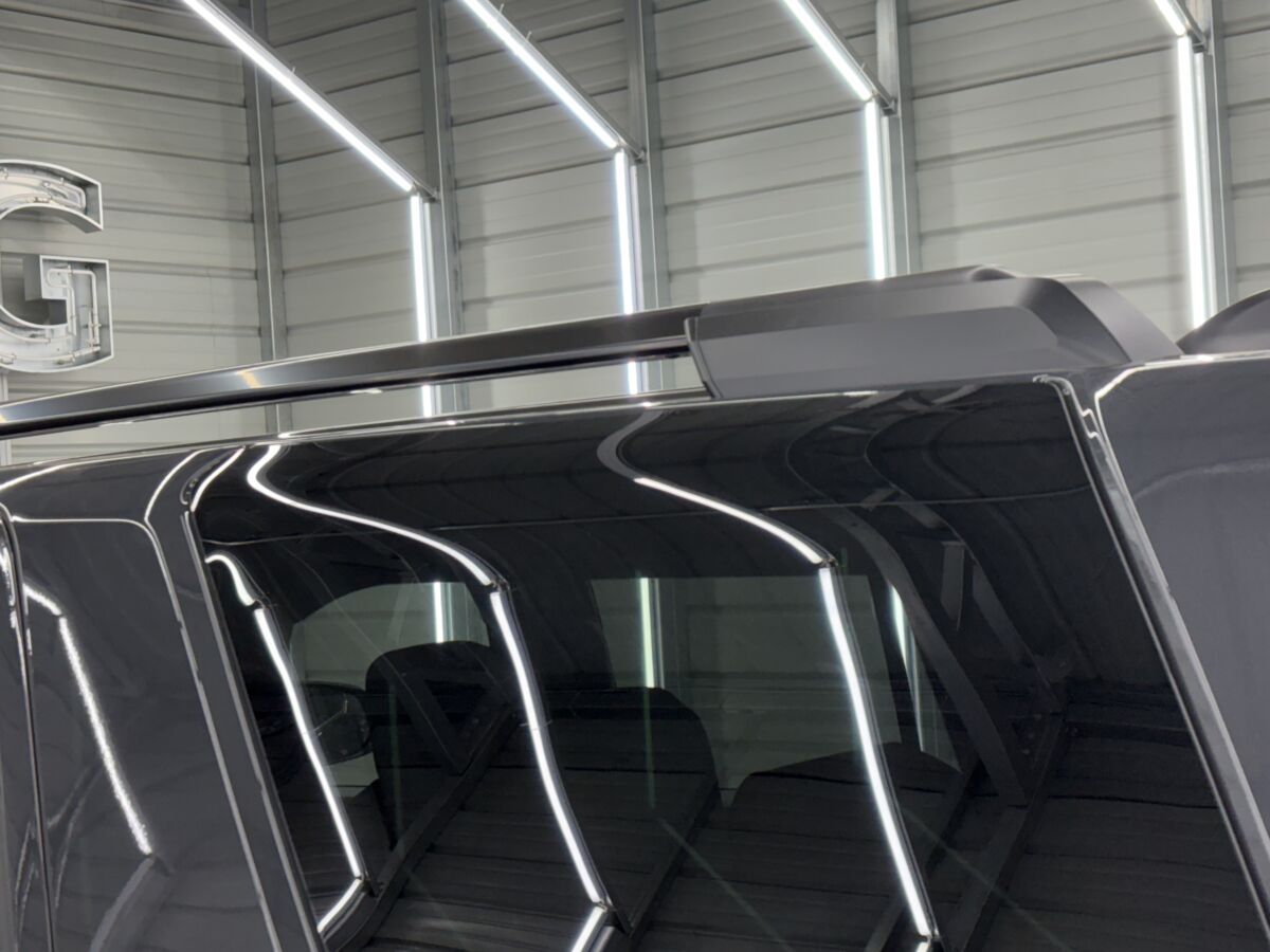 古くからのファンの方は必見!ルーフ部まで回り込んだ「 ラップオーバークォーターウィンドウ 」 垂直基調のリアウィンドウは、拘ったディティールになります。