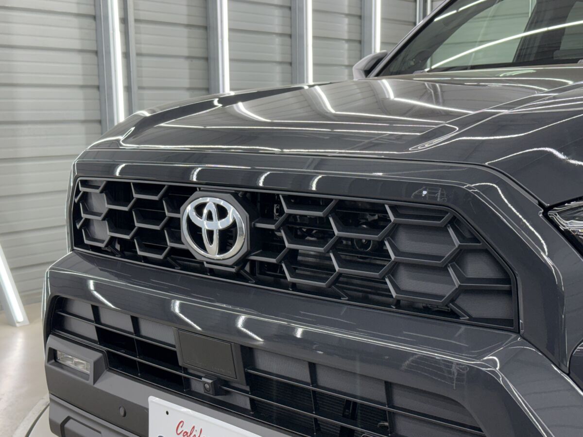 初代ハイラックスをオマージュした形状のワイドフェンダーを装着、TRDオフロードプレミアムは、ブラックカラーとなり、ボディ色 アンダーグラウンドを相まって更に車両のっ迫力を引き立たせております。