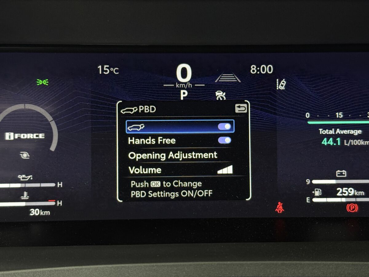 電動リアゲート(フットオープナー付き)が搭載されておりますので、荷物で手が塞がっていても、足元の操作でスムーズに開閉!キーを取り出す必要も無く、自然に動作可能です。