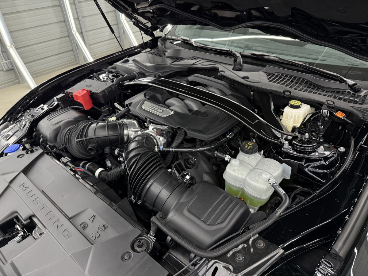486馬力へとパワーアップした第4世代コヨーテV8エンジン。オイルの流れを改善する新形状のオイルパン、ドライバー側のエキマニがアップデートされています。細かな修正では排気側のカムシャフトのタイミングなどもチューニングされています。