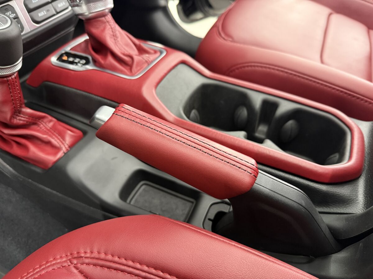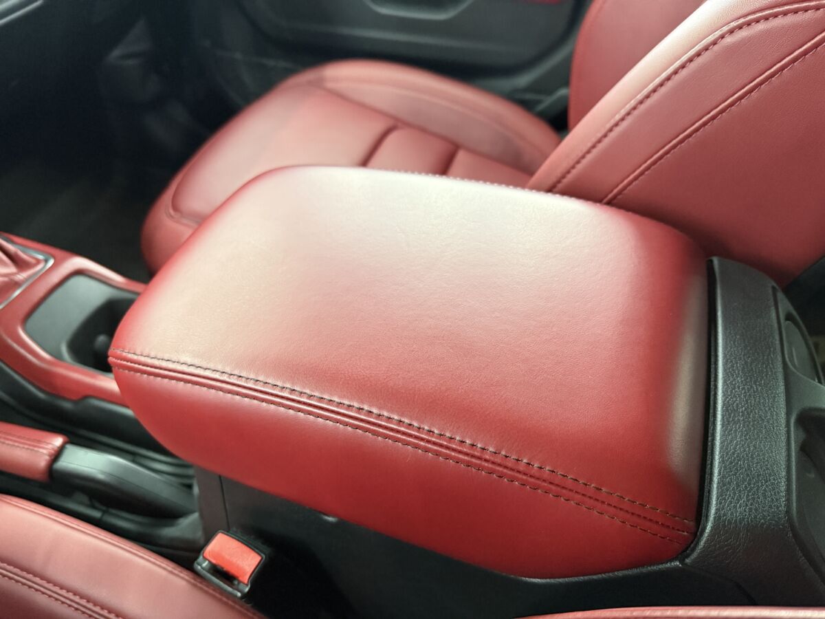 センターコンソールもレザー仕上げ、レッドステッチが入ってお洒落です。センターコンソール内にUSB充電ポートが備わります。