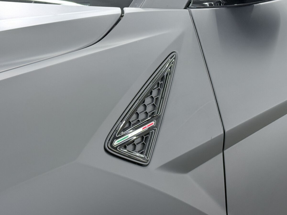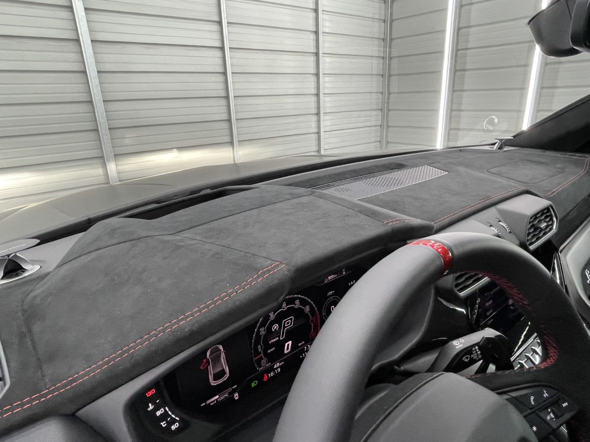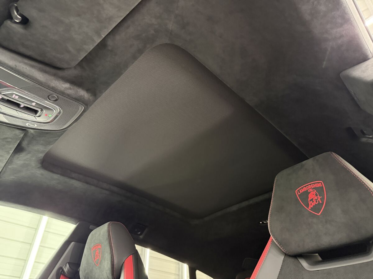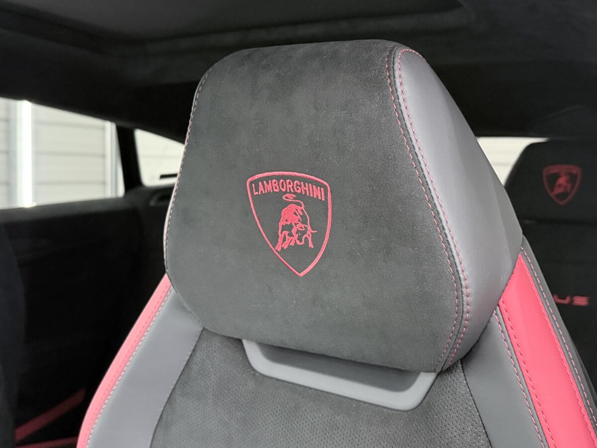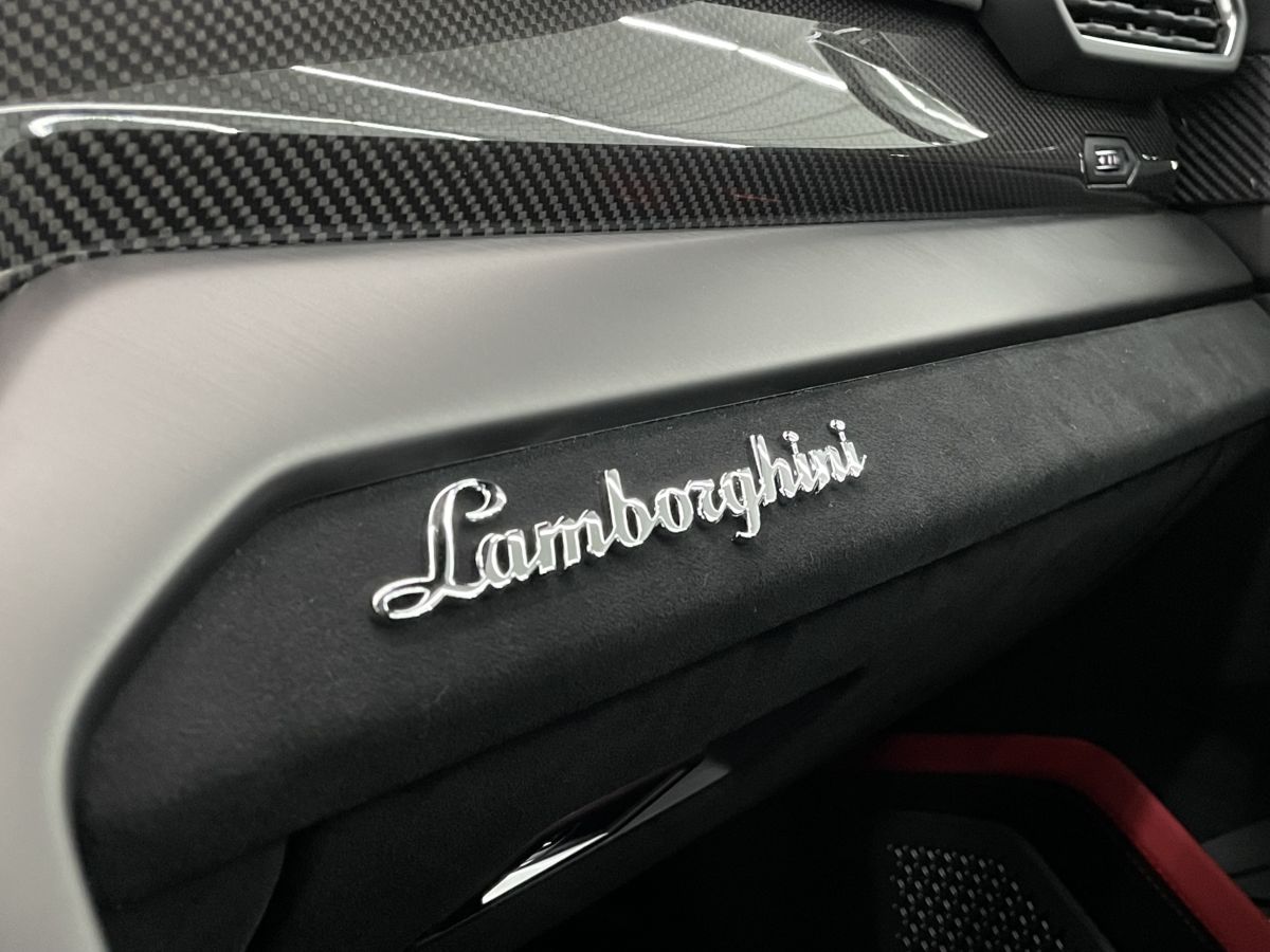 ダッシュボードのランボルギーニエンブレムとヘッドレストにファイティングブルエンボスが入れられるブランディングパッケージを、オプションで選択しております。