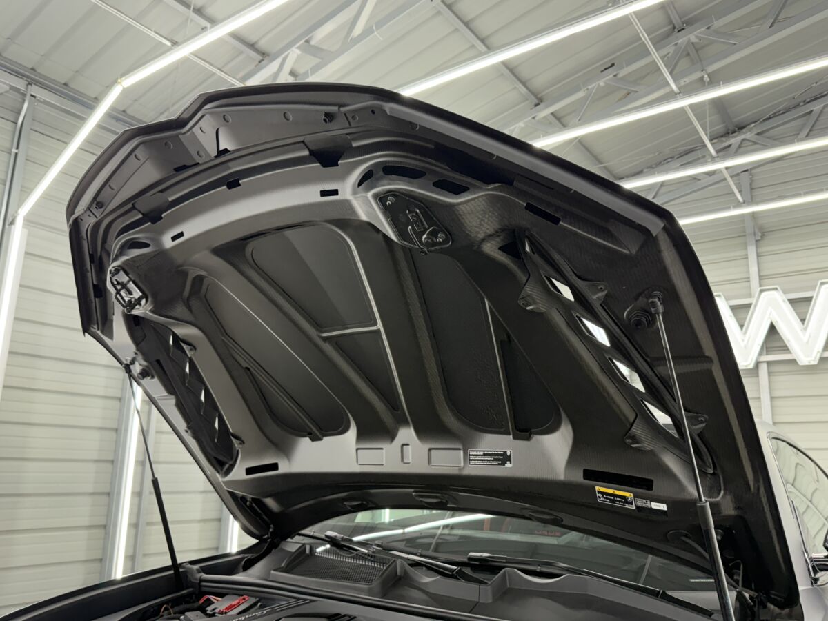 ドライカーボン製ボンネットがハイパフォーマンスモデルの証です。