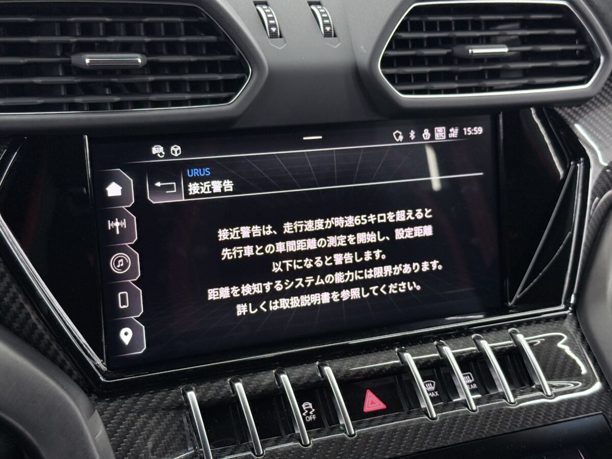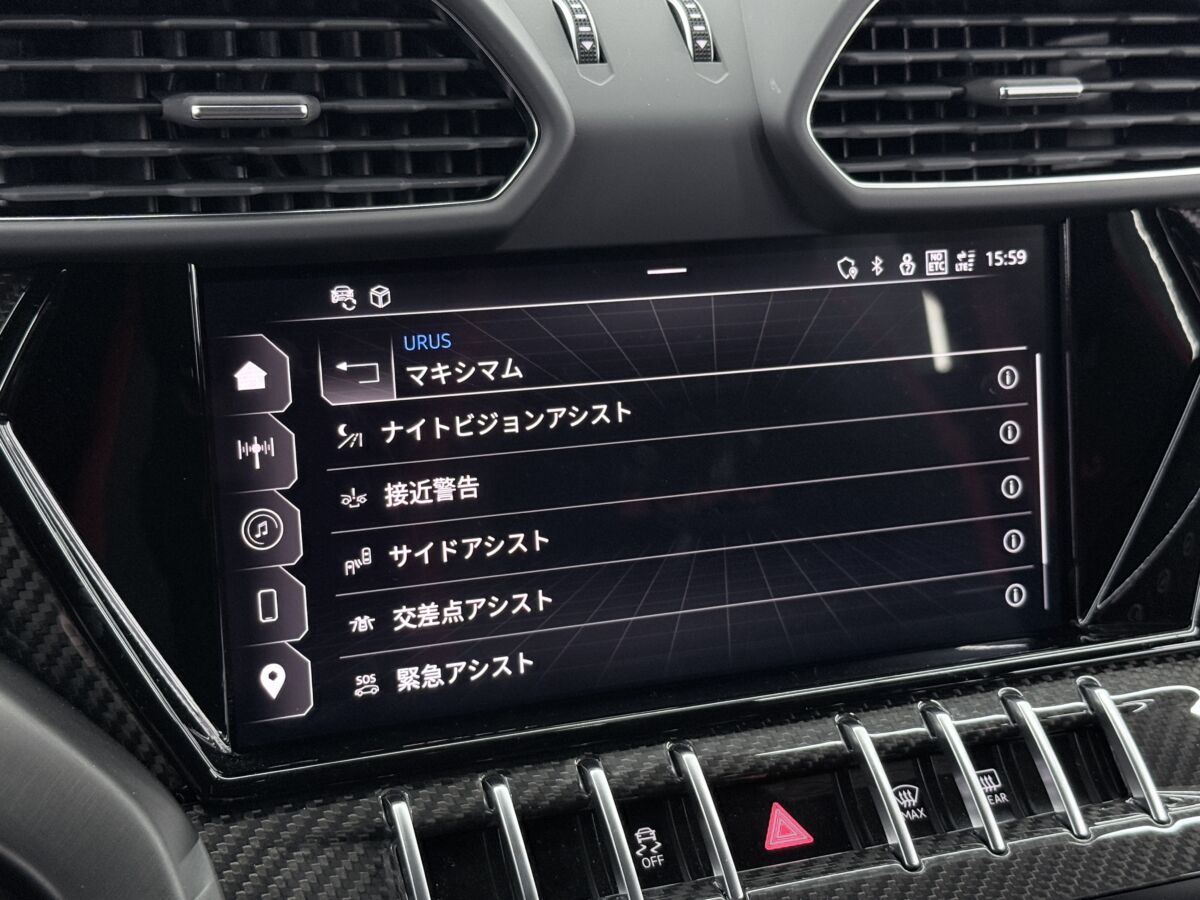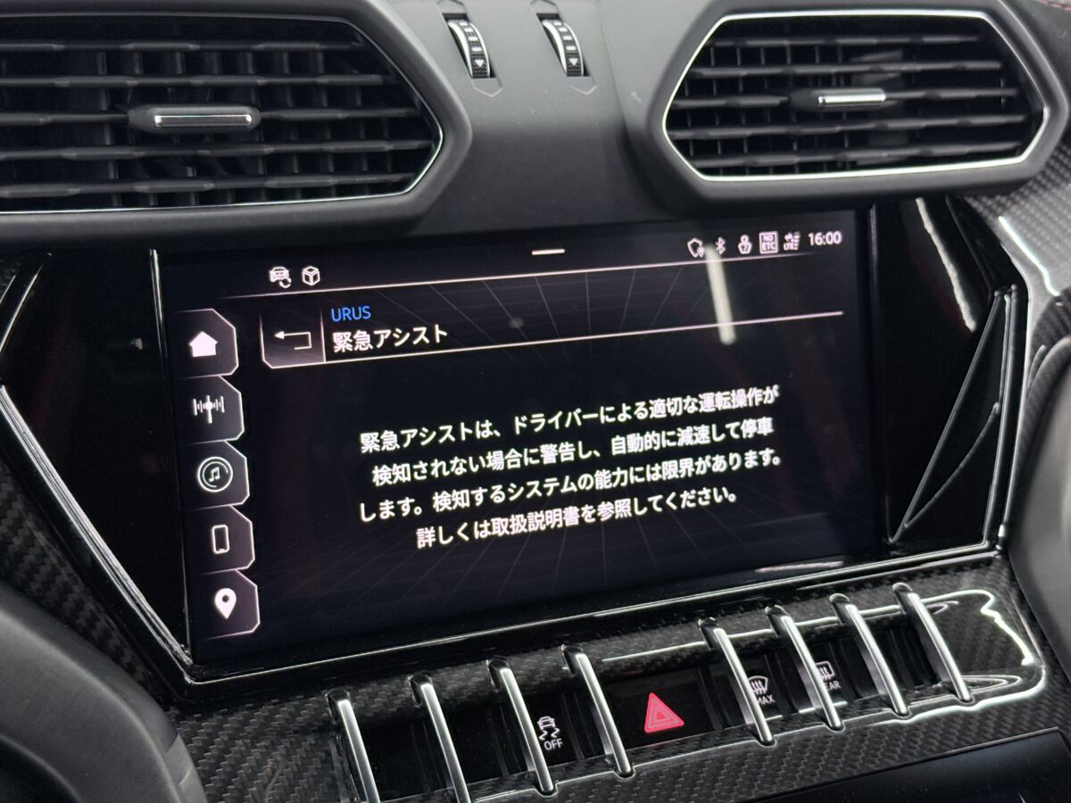 スーパーカーと言えども日常使いも考慮したウルスには、自動ブレーキ、アダプティブクルーズコントロール、ナイトビジョンなどドライバーアシスト機能も充実しています。