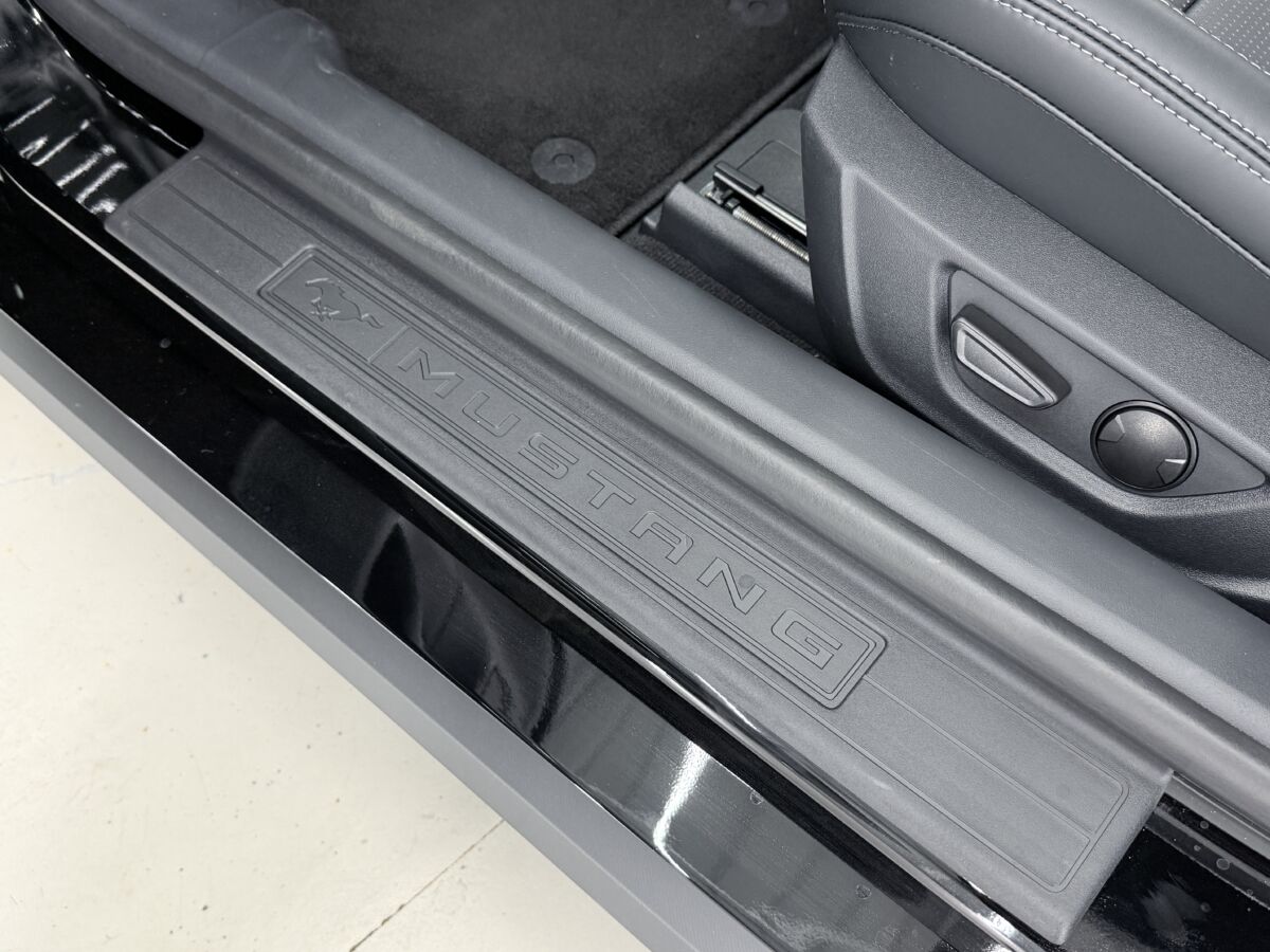 ドアシルプレートは大切なボディを靴底の小石などから入る小傷から保護します。また、雨の日に傘を持って入る際に、傘の先端でドアシル部分に傷が入るなど、日常のちょっとしたシーンで発生する小傷を未然に防いでくれます。オーナーの困りごとを解決するためのポイントとなっています。MUSTANGロゴが入り、ブランドをさりげなく主張しています。