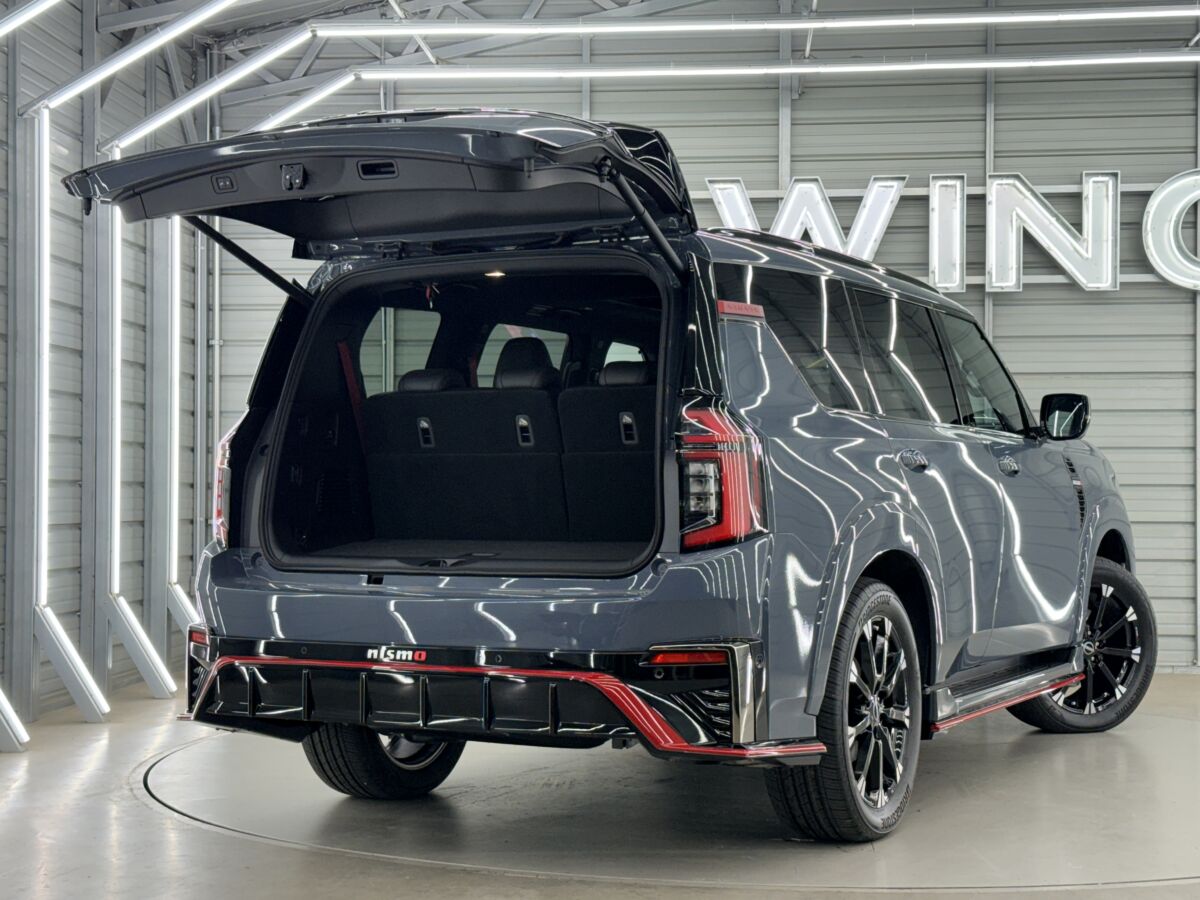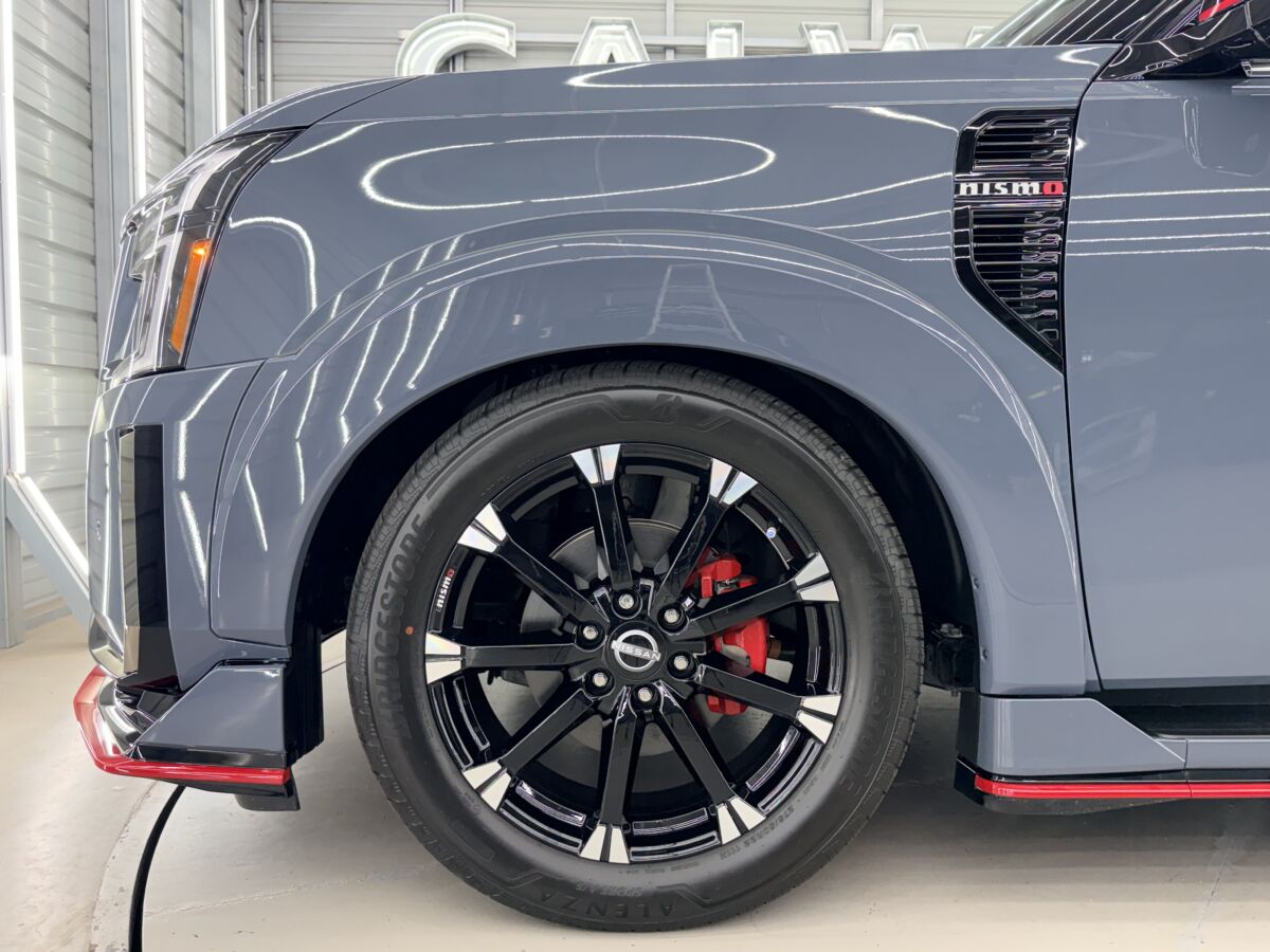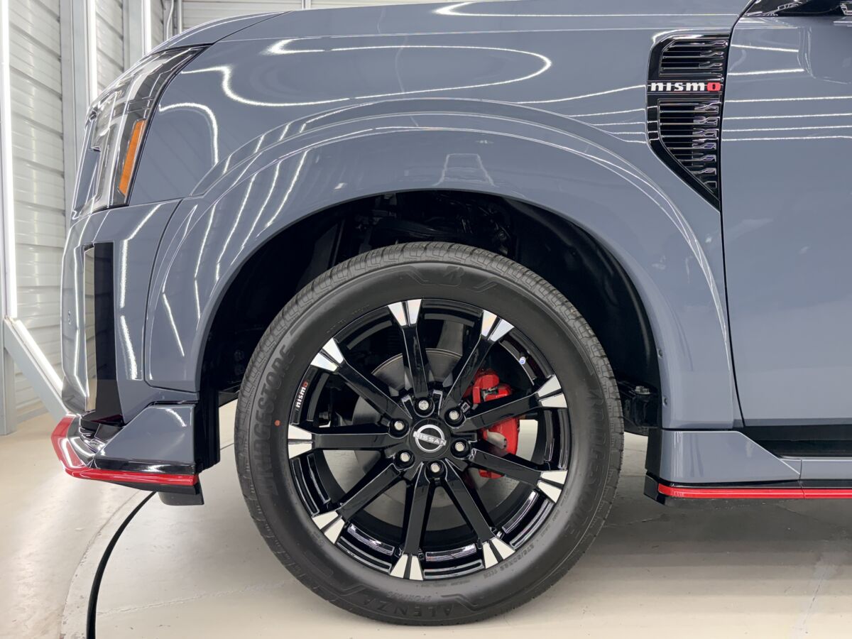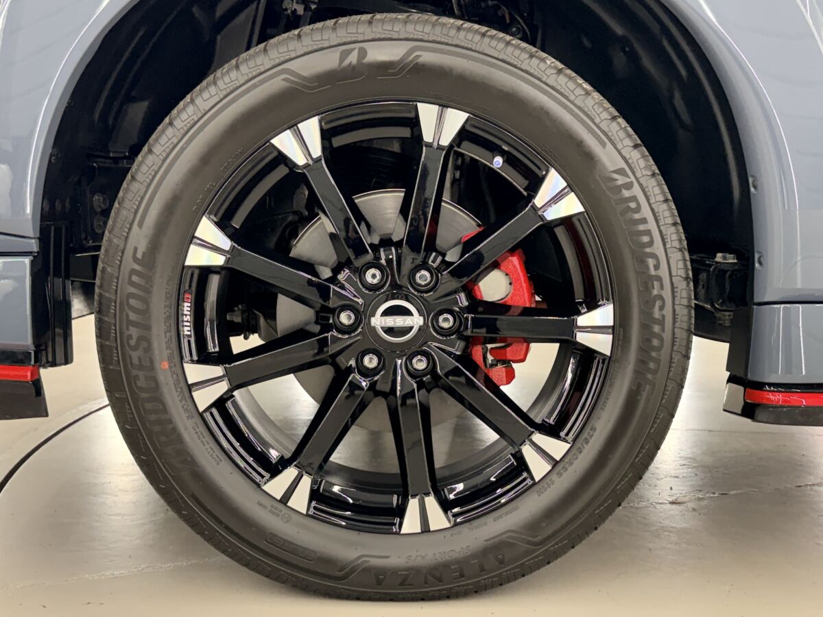 専用フロント/リアバンパー&前後スポイラー、フェンダーフレア、22インチ鍛造ホイール、LEDフォグ、レッドブレーキキャリパーを装着し、NISMOのコンセプトが見事に表現されています。