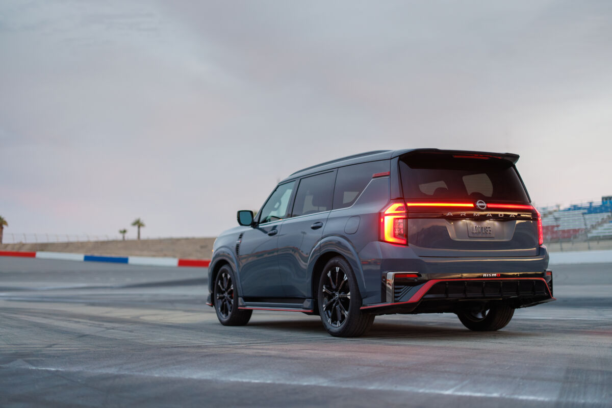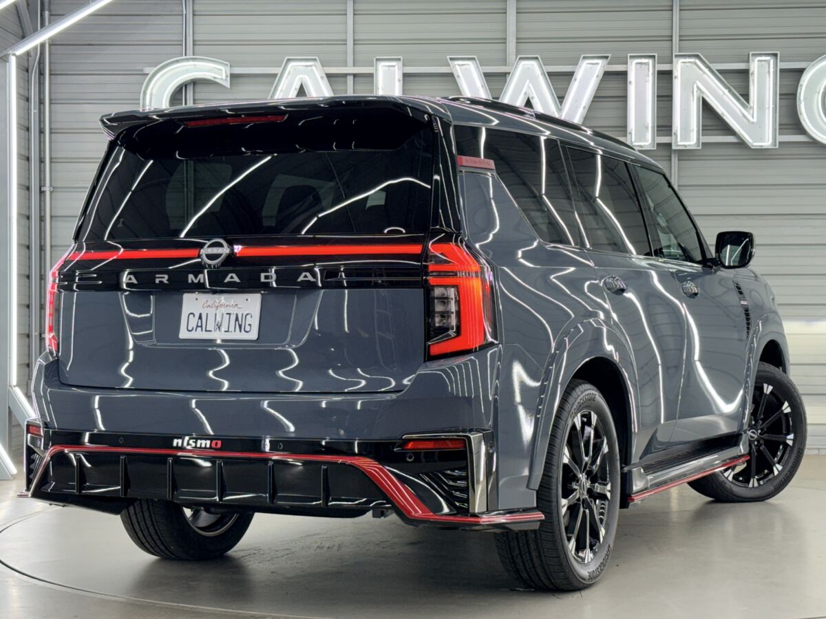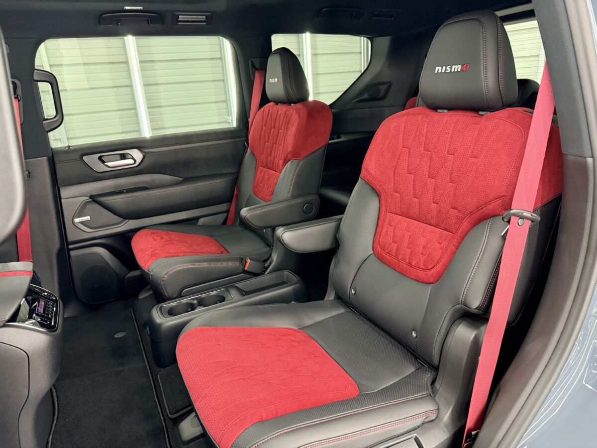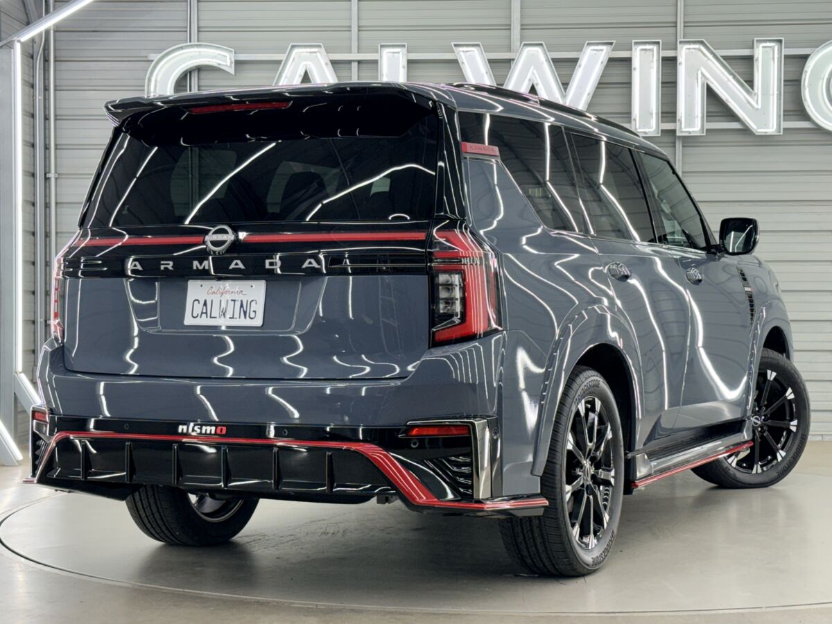 専用フロント/リアバンパー&前後スポイラー、フェンダーフレア、22インチ鍛造ホイール、LEDフォグ、レッドブレーキキャリパーを装着し、NISMOのコンセプトが見事に表現されています。