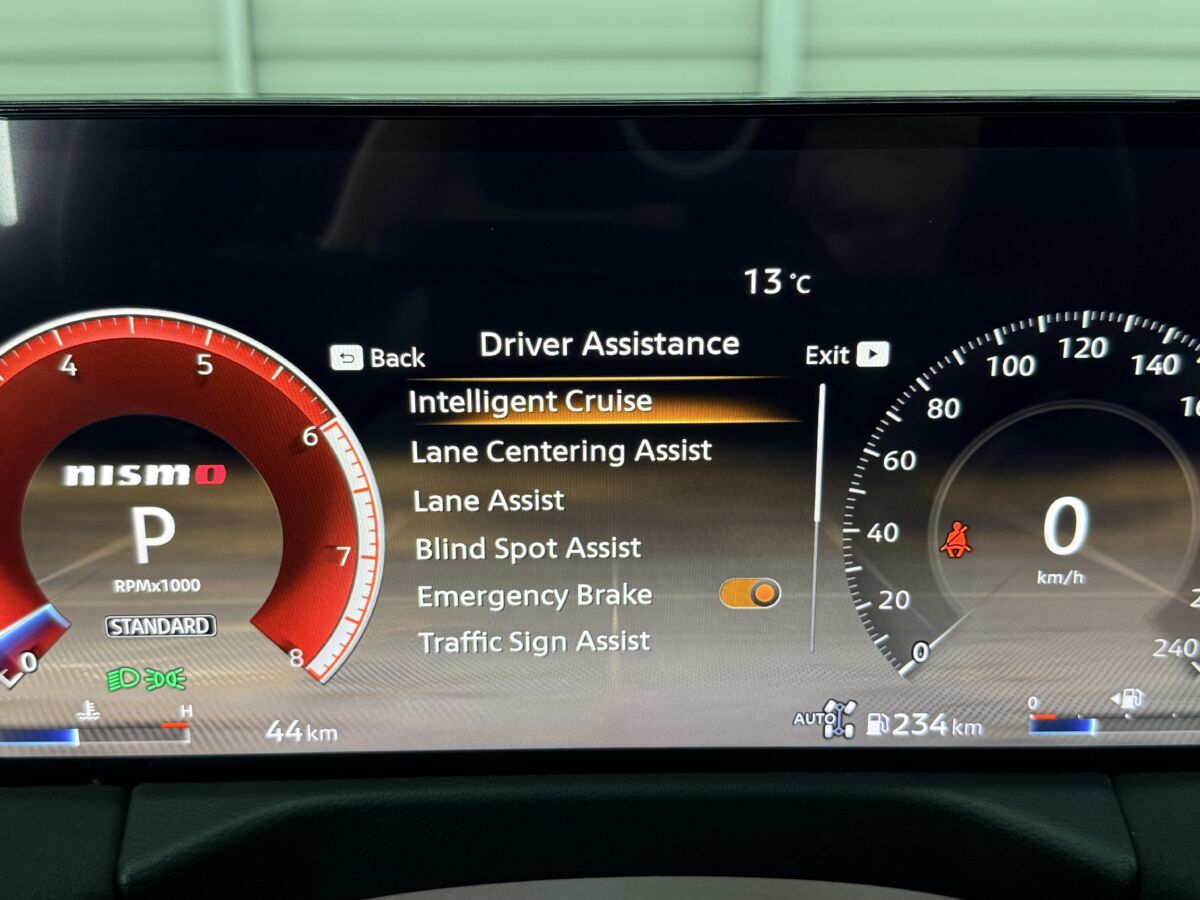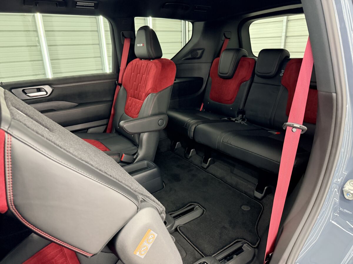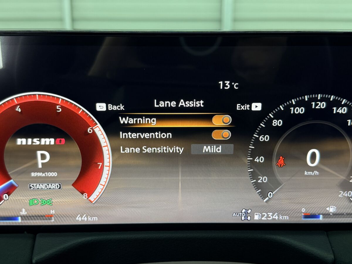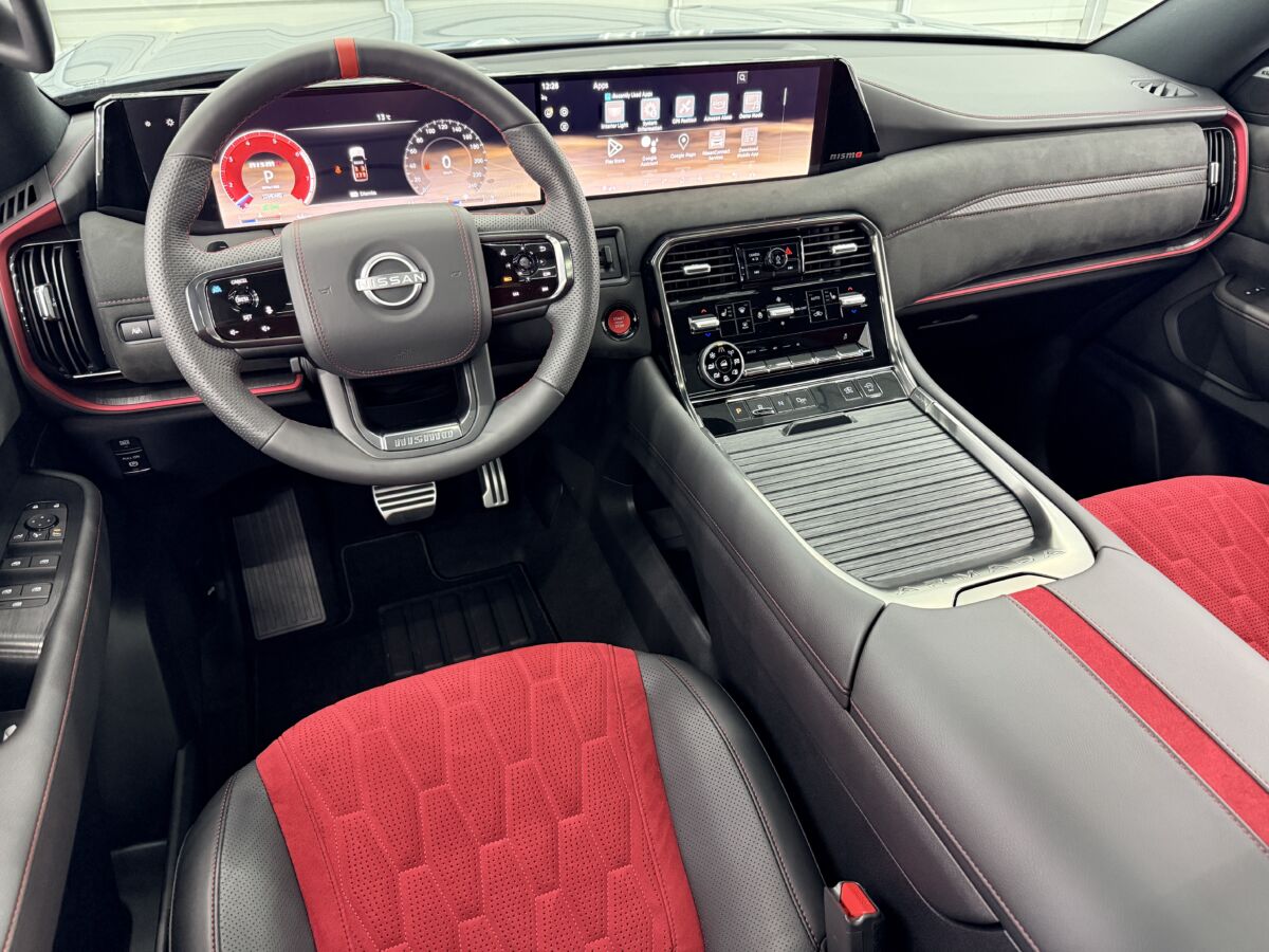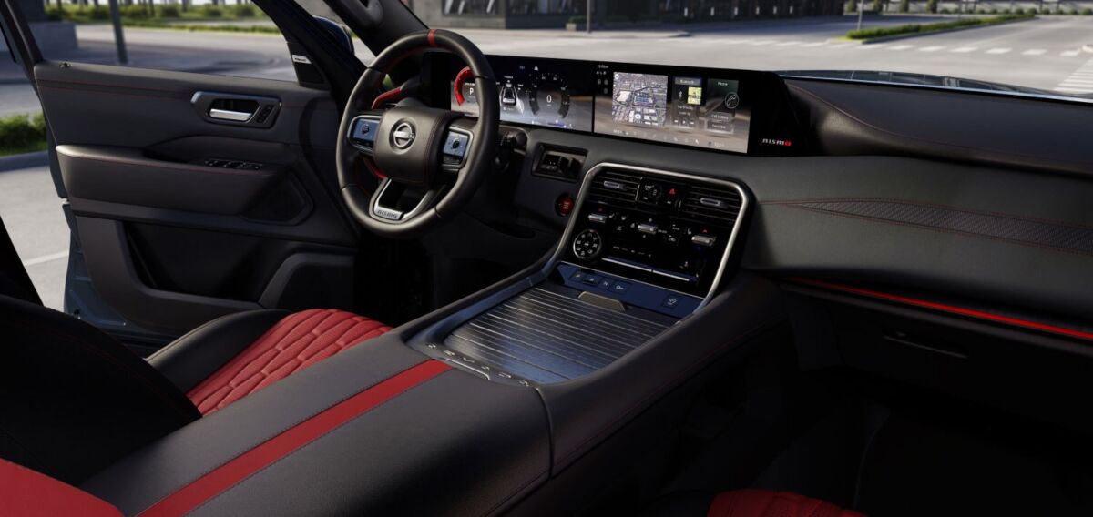 NISMOらしいスポーティなインテリアは、レーシングルーツであることを感じさせており、ダッシュボードに沿って配置された鮮やかなレッドアクセントトリム、NISMOエンブレムや、キャビン全体に施されたレッドステッチなどにより、触感と視覚の両面で“特別感”を高めています。