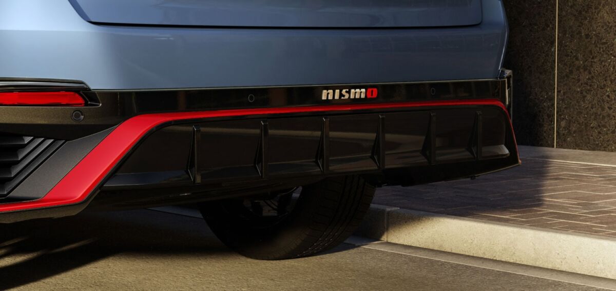 NISMOのデザインフォーマットに基づいたディフューザー形状は、単なる装飾にとどまらず、走行時の空気の流れを整え、車両の安定性向上に貢献しています。さらに、シャープに造形されたラインと立体的な構成により、リアビューには引き締まった印象とスポーティさが加わり、フロントからサイドへと続くデザインの流れを美しく締めくくります。