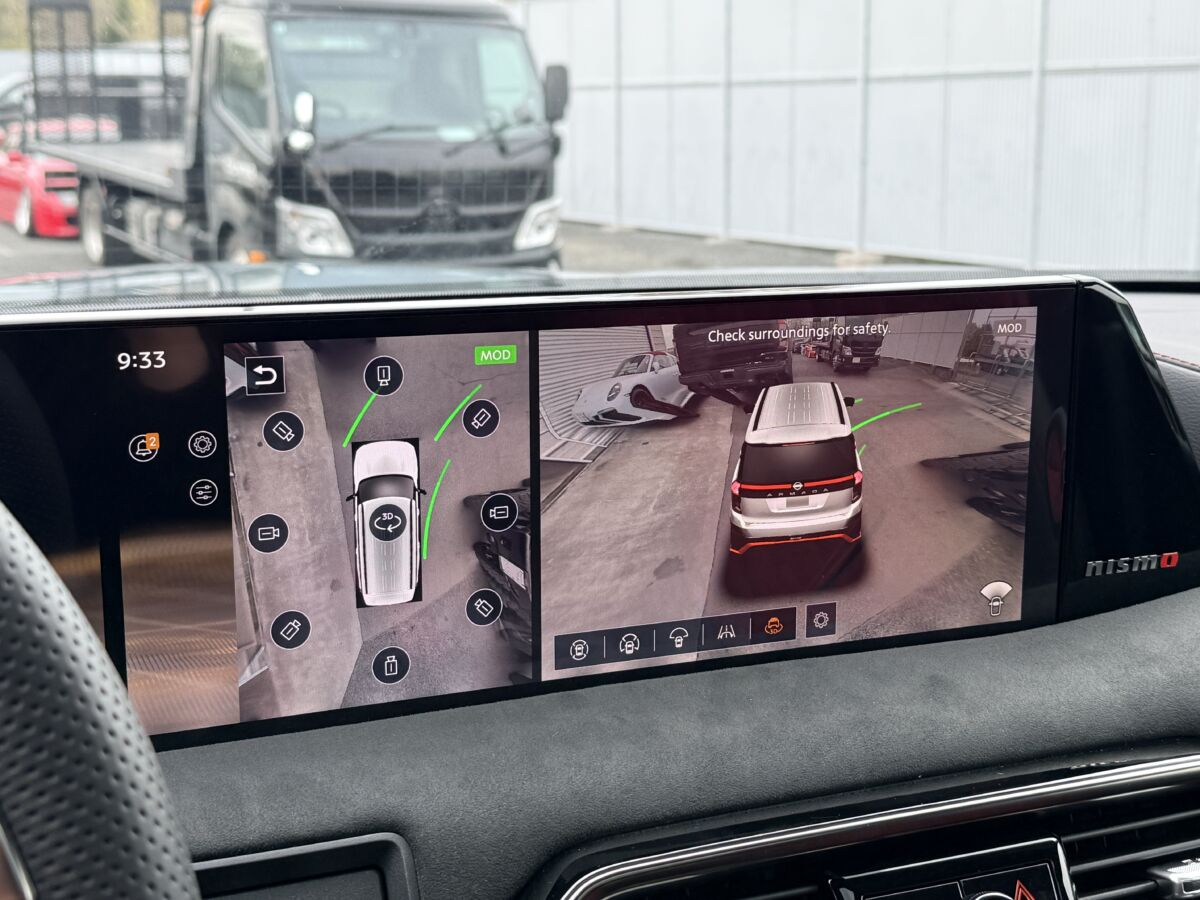 大型SUVであるアルマーダの後方視界は、何かと心配もあるかと思います。ただ、こちらのモニターを確認すると、広角視野でガイドラインも非常に分かりやすく、不慣れな駐車場などでも安心して駐車が可能です。3Dアラウンドビューモニターの圧倒的な画像解析技術も相まって、日産の最新技術を最も感じるポイントとなっています。