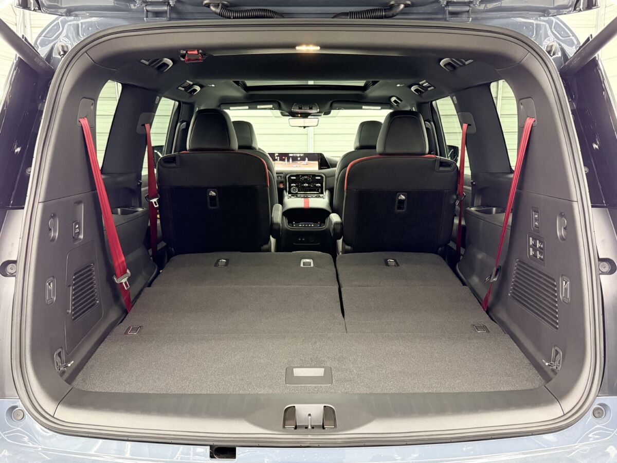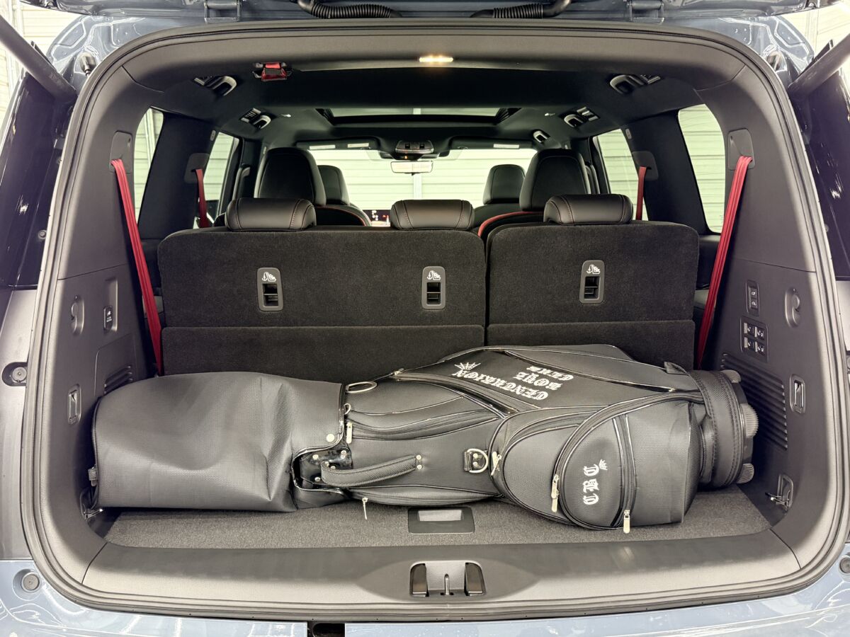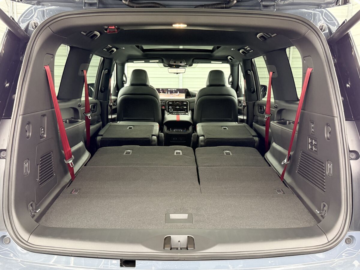 アウトドアギアやスーツケースなど、用途の異なる荷物にも柔軟に対応できるのが魅力です。北米メディア(※参照:Car and driver)の実測では、3列使用時に機内持ち込みサイズのスーツケースを6個、フルフラットでは最大24個を収納する巨大なスペースとなります。